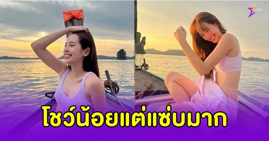 เพราะทริปนี้ “ณิชา” แจกความเซ็กซี่เบา ๆ ใส่บิกินีสีม่วงพาสเทลนั่งโพสท่าแบบสบายๆ ระหว่างล่องเรือกลางทะเลชมพระอาทิตย์ลับขอบฟ้า ผ่านอินสตาแกรมส่วนตัว @nychaa พร้อมแคปชันว่า “Sunset บนหลังคาเรือ กลางทะเล มันดีจริง ๆ นะ ⛵️🌞”