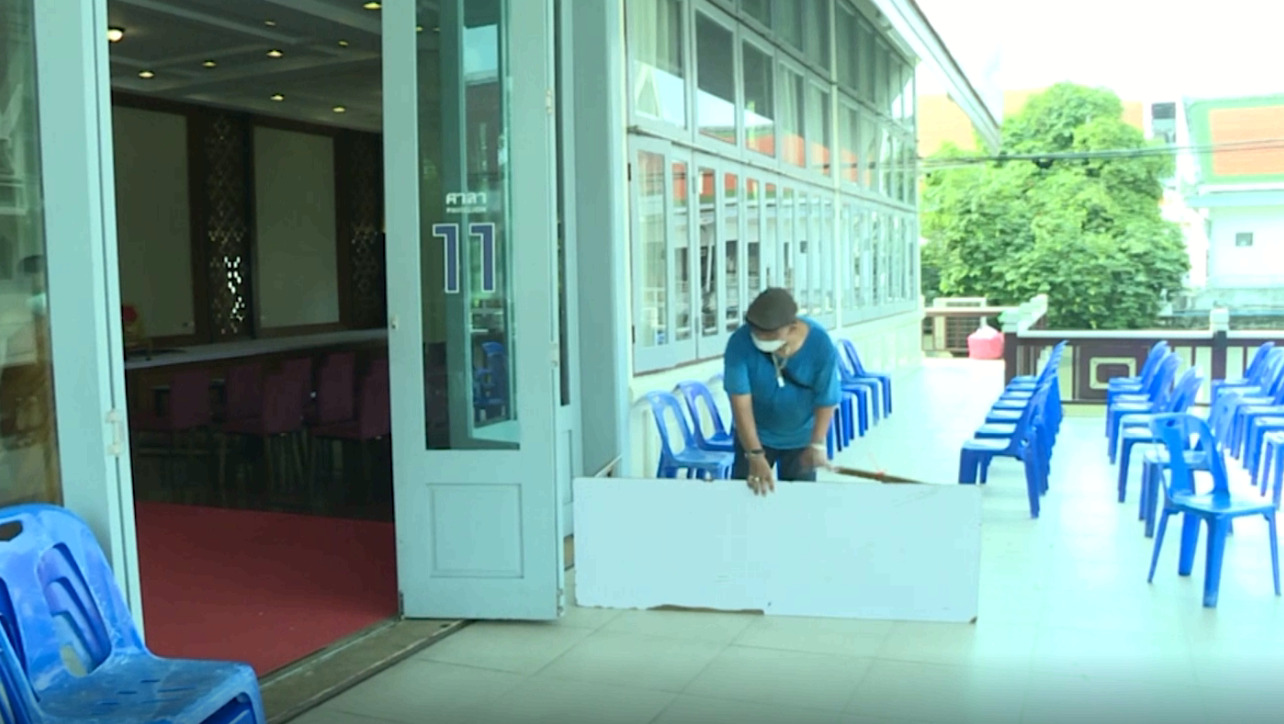 ตลอดช่วงเช้าที่ผ่านมา เจ้าหน้าที่ของวัดเทพศิรินทร์ เข้ามาทำความสะอาดสถานที่ภายในศาลากลางน้ำ จัดโต๊ะเก้าอี้ และเตรียมจัดสถานที่สำหรับประกอบพิธีพระราชทานน้ำหลวงอาบศพ และพิธีรดน้ำศพ ที่จะมีขึ้นในช่วงบ่ายวันนี้ จากการสอบถามเจ้าหน้าที่ ศาลาแห่งนี้สามารถรองรับผู้มาร่วมงานได้ประมาณ 300-400 คน แต่หากมีผู้มาร่วมไว้อาลัยจำนวนมาก จนสถานที่ไม่เพียงพอ ก็สามารถเปิดศาลาใกล้เคียงเพื่อรองรับแขกเพิ่มได้