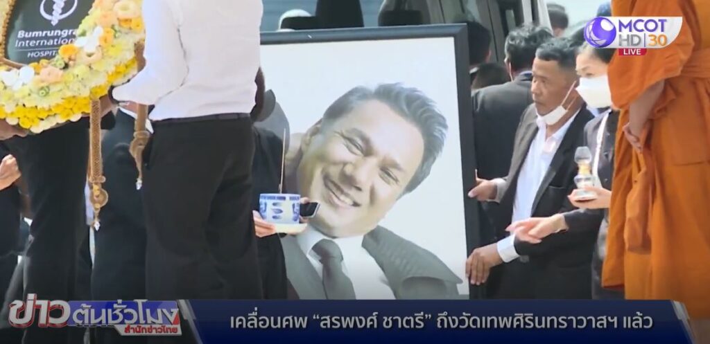 เมื่อช่วงประมาณ 14.20 น. ที่ผ่านมา ทางครอบครัวได้เคลื่อนศพ “สรพงศ์” จากโรงพยาบาลบำรุงราษฎร์ มาถึงศาลากลางน้ำ วัดเทพศิรินทราวาสฯ เรียบร้อยแล้ว ท่ามกลางความโศกเศร้าของครอบครัว ญาติ และเพื่อนศิลปินนักแสดงในวงการบันเทิง รวมถึงบรรดาแฟนคลับที่ชื่นชอบและติดตามผลงานของสรพงศ์ ในช่วงตลอดกว่า 50 ปีที่ผ่านมา ที่ทยอยเดินทางมาร่วมไว้อาลัยกันอย่างต่อเนื่อง