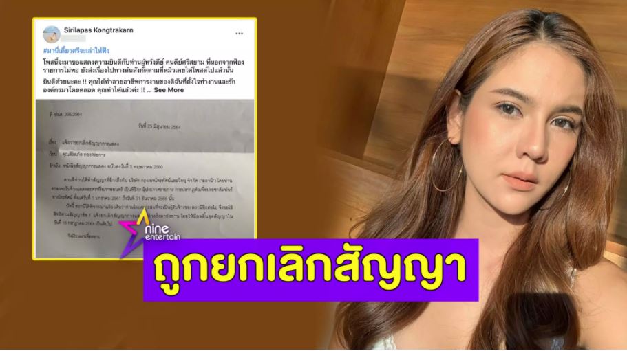 นักแสดงสาว “หมิว สิริลภัส กองตระการ” โพสต์เฟซบุ๊กส่วนตัว เปิดจดหมายแจ้งการยกเลิกสัญญาการแสดงจากวิกหมอชิต ต้นสังกัด โดยให้เหตุผลว่าไม่เหมาะสมที่จะเป็นผู้รับจ้างของสถานีอีกต่อไป โดยให้มีผลสิ้นสุดสัญญาในวันที่ 16 กรกฎาคม 2564 เป็นต้นไป.