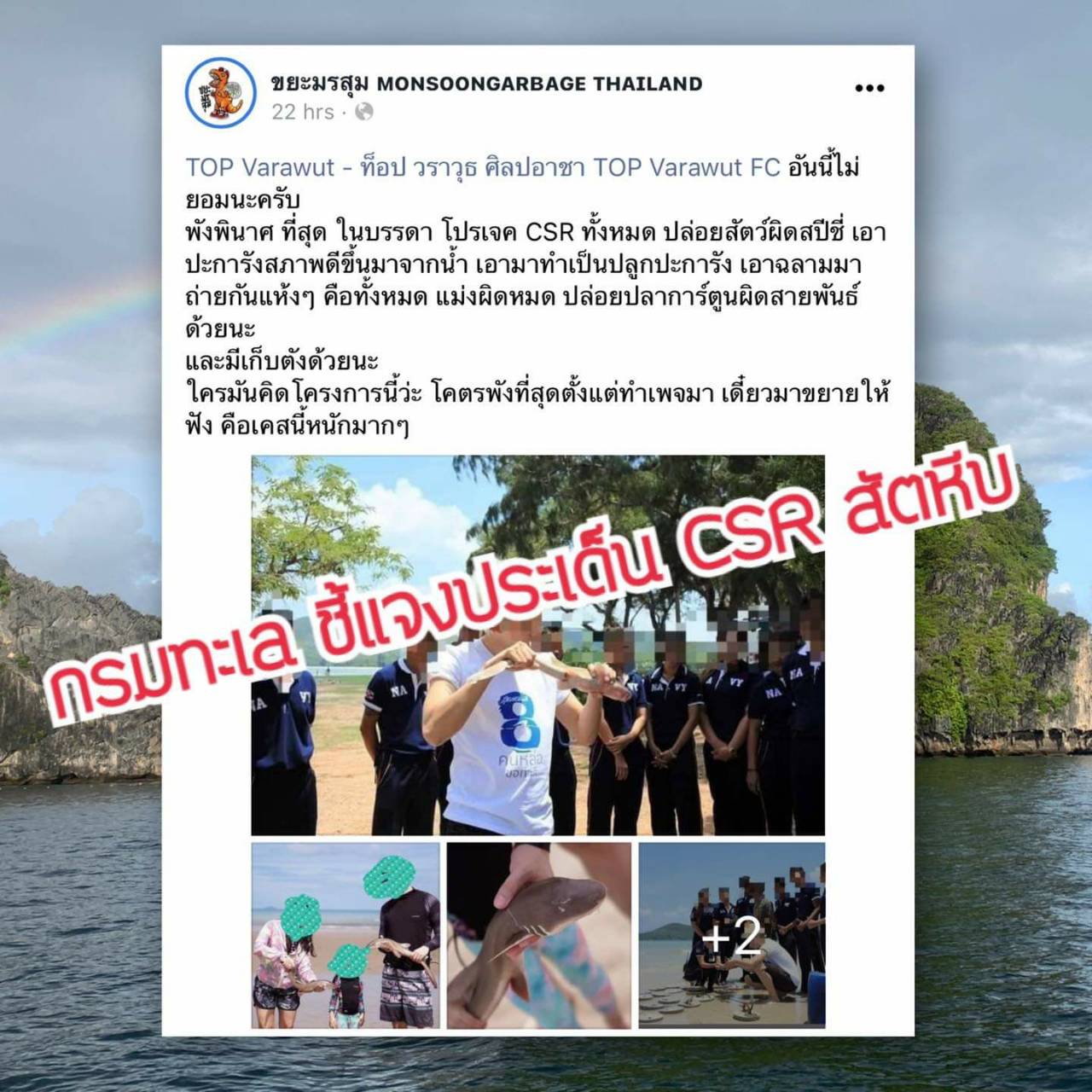 นายโสภณ ทองดี อธิบดีกรมทรัพยากรทางทะเลและชายฝั่ง (ทช.) กล่าวถึงกรณีที่เกิดกระแสดราม่าว่า มีอินฟลูเอนเซอร์ไปร่วมกิจกรรมปล่อยปลาฉลามกับหน่วยนาวิกโยธินในพื้นที่ของกองทัพเรือที่สัตหีบ จ.ชลบุรี โดยมีการปล่อยปลาฉลามและปลาการ์ตูนที่อาจเป็นสิ่งมีชีวิตต่างถิ่นหรือเอเลี่ยนสปีชีส์
