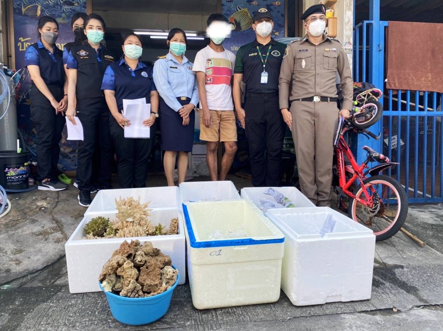นายอรรถพล เจริญชันษา อธิบดีกรมทรัพยากรทางทะเลและชายฝั่ง (อทช.) กล่าวว่า เจ้าหน้าที่สถาบันวิจัยและพัฒนาทรัพยากรทางทะเลและชายฝั่ง และส่วนป้องกันและปราบปรามทางทะเล กองอนุรักษ์ทรัพยากรทางทะเล กรมทรัพยากรทางทะเลและชายฝั่ง (ทช.) สนธิกำลังร่วมกับเจ้าหน้าที่ตำรวจกองบังคับการปราบปรามการกระทำผิดเกี่ยวกับทรัพยากรธรรมชาติและสิ่งแวดล้อม (บก.ปทส.) เพื่อตรวจค้นสิ่งผิดกฎหมายตามหมายศาลอาญามีนบุรี บ้านพักบริเวณซอยเคหะร่มเกล้า 24 เขตลาดกระบัง กรุงเทพมหานคร ซึ่งเป็นการตรวจค้นเพื่อตรวจสอบการกระทำความผิดตามพระราชบัญญัติสงวนและคุ้มครองสัตว์ป่า พ.ศ. 2562 โดยเจ้าหน้าที่ตำรวจได้รับเบาะแสว่ามีการลักลอบค้าปะการัง ภายหลังจากการตรวจค้นพบสัตว์ป่าคุ้มครอง และซากสัตว์ป่าคุ้มครองหลายชนิด อาทิ ปะการังแข็ง ปะการังอ่อน และซากปะการัง จำนวนกว่า 180 รายการ ซึ่งการครอบครองสัตว์ป่าดังกล่าวเป็นความผิดตามพระราชบัญญัติสงวนและคุ้มครองสัตว์ป่า พ.ศ. 2562 จากการสอบสวนพบว่าผู้ต้องหาครอบครองสัตว์ป่าเพื่อการค้า จึงเป็นการกระทำความผิดฐานค้าและมีไว้ในครอบครองซึ่งสัตว์ป่าคุ้มครอง และซากสัตว์ป่าคุ้มครองโดยไม่ได้รับอนุญาต