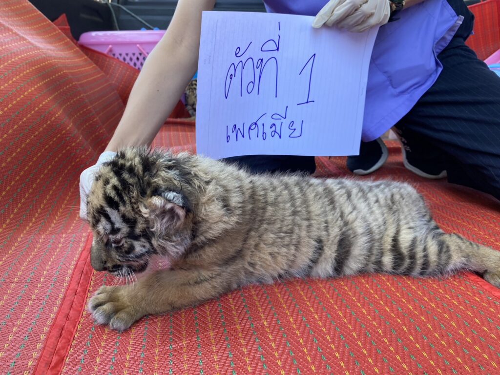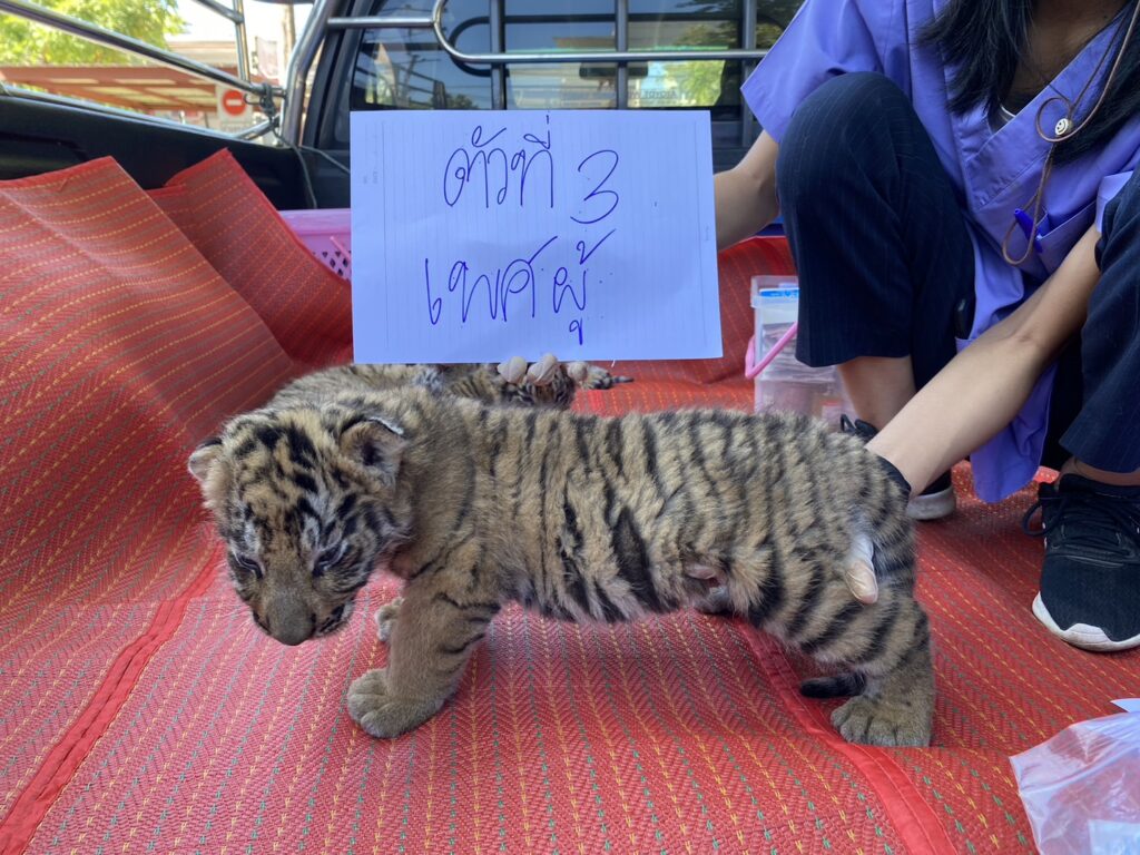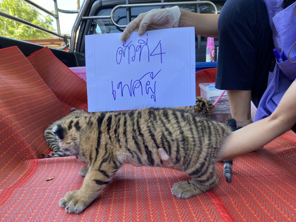สำหรับลูกเสือโคร่งของกลางส่งมอบให้สถานีเพาะลี้ยงสัตว์ป่าจุฬาภรณ์ จ. ศรีสะเกษ นำไปดูแล โดยสำนักบริหารพื้นที่อนุรักษ์ที่ 9 ได้เก็บตัวอย่างเลือดของเสือโคร่งทั้ง 4 ตัว นำส่งตรวจที่หน่วยปฏิบัติการนิติวิทยาศาสตร์ กรมอุทยานแห่งชาติฯ เพื่อตรวจดีเอ็นเอสำหรับเปรียบเทียบกับฐานข้อมูลขยายผลหาพ่อแม่ของเสือโคร่งต่อไป