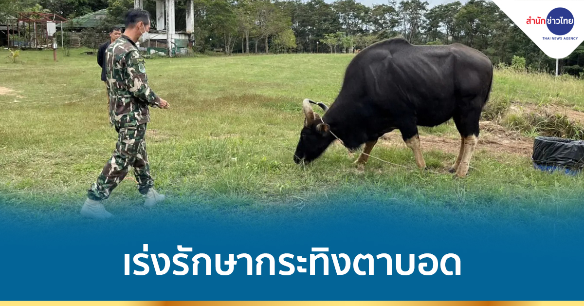 นายชัยยา ห้วยหงษ์ทอง หัวหน้าอุทยานแห่งชาติเขาใหญ่กล่าวว่า เป็นห่วงกระทิงตาบอดเพศผู้ที่ช่วยเหลือและนำมาดูแลที่หน่วยพิทักษ์ผากระดาษ แล้วนำมาอยู่กับกระทิงตาบอดเพศเมียที่ช่วยเหลือมาก่อนหน้าไม่กี่วัน ทั้งนี้สัตวแพทย์เข้ามาตรวจบาดแผลบริเวณชายโครงขวาซึ่งไม่ทราบว่า เกิดจากอะไร แต่เป็นการบาดเจ็บก่อนนำมาดูแลเมื่อวันที่ 17 พ.ย. ล่าสุดพบว่า มีหนอนชอนไชแผล สัตวแพทย์จึงทำความสะอาด ใส่ยาฆ่าเชื้อ และให้ยาปฏิชีวนะ ที่น่าเป็นห่วงคือ ร่างกายของมันซูบลงอย่างรวดเร็วจนซี่โครงขึ้น สัตวแพทย์จึงให้ยาบำรุงเสริมด้วย