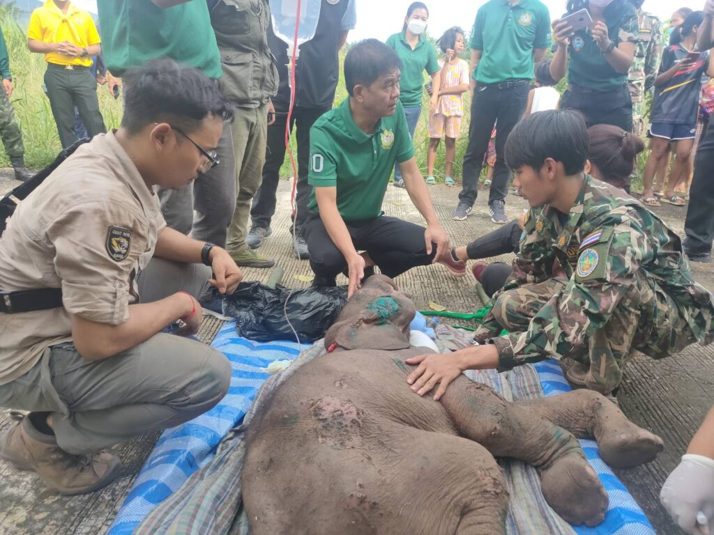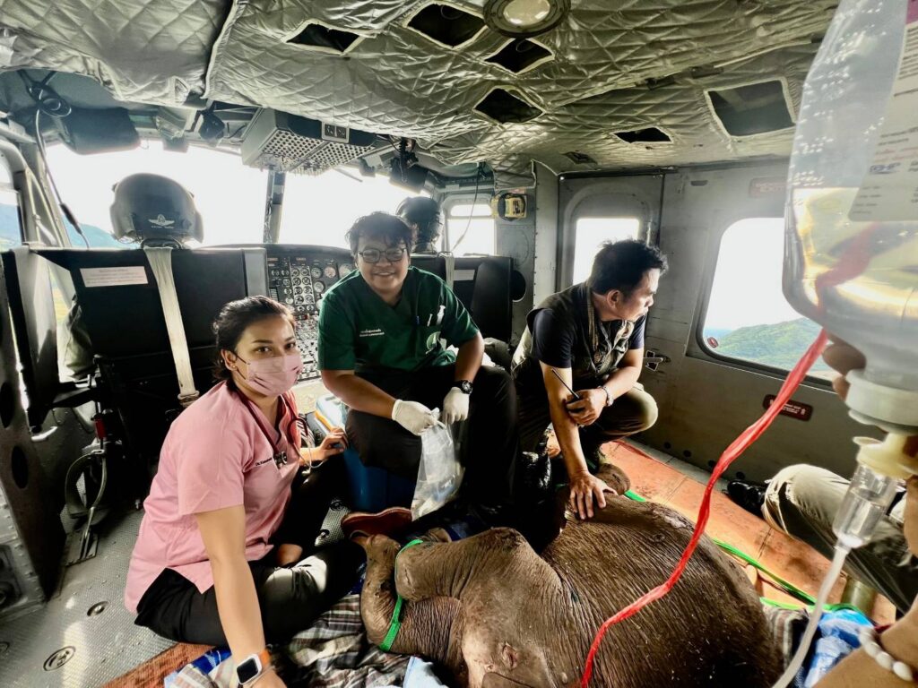 สุพรรณบุรี 3 ธ.ค. – รมว. ทส. สั่งกรมอุทยานฯ เคลื่อนย้ายลูกช้างหลงโขลงที่พบในอำเภอศรีสวัสดิ์ จังหวัดกาญจนบุรี โดยประสานขอใช้เฮลิคอปเตอร์ของทหาร เพื่อนำลูกช้างมาอนุบาลและฟื้นฟูสุขภาพที่ศูนย์พัฒนาการจัดการสัตว์ป่าบึงฉวากอย่างเร่งด่วนเนื่องจากมีภาวะติดเชื้อ อยู่ในสภาพอ่อนแรงมาก ขาดน้ำรุนแรง และมีบาดแผลหลายแห่ง โดยเฮลิคอปเตอร์นำลูกช้างถึงจังหวัดสุพรรณบุรีได้อย่างปลอดภัย