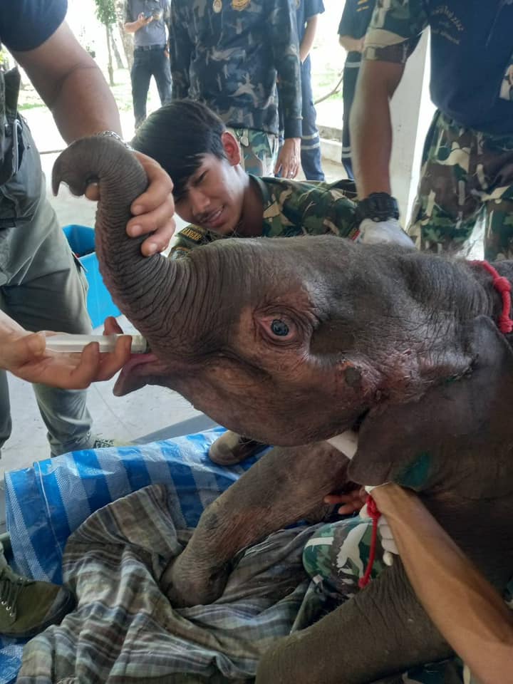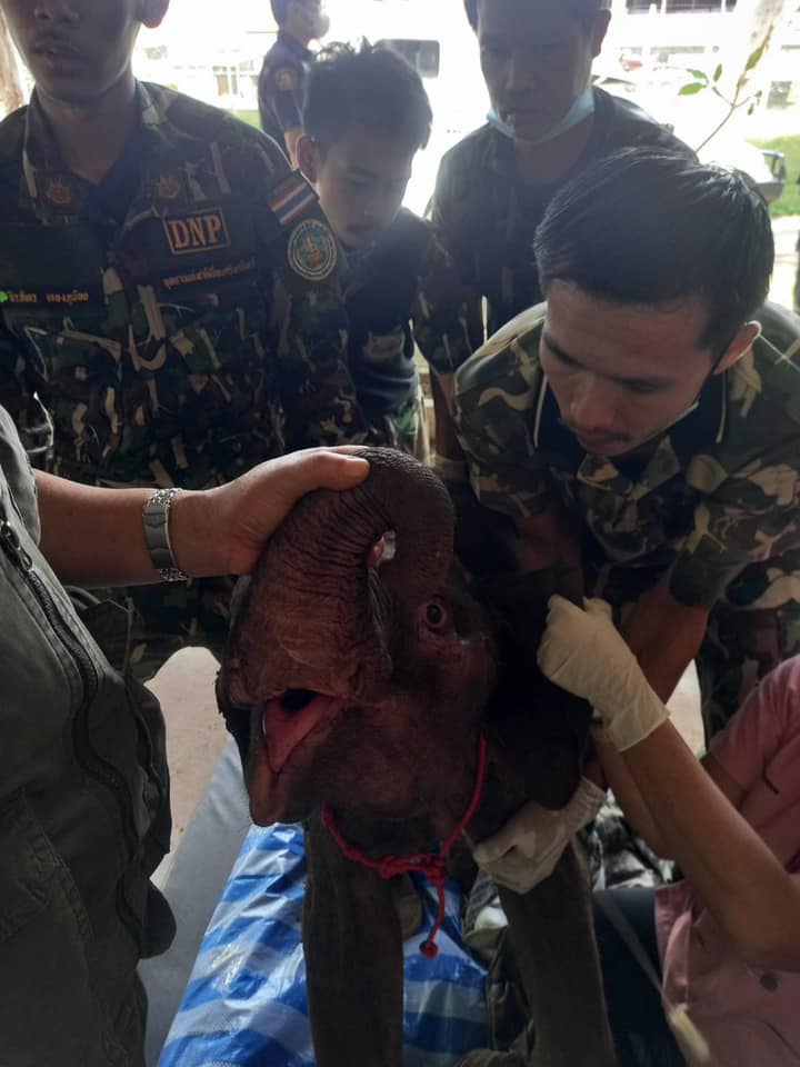 นายรัชฎา สุริยกุล ณ อยุธยา กรมอุทยานแห่งชาติ สัตว์ป่า และพันธุ์พืชกล่าวว่า ได้รับรายงานจากนายอนันต์ โพธิ์พันธุ์ ผู้อำนวยการสำนักบริหารพื้นที่อนุรักษ์ที่ 3 (บ้านโป่ง) เกี่ยวกับลูกช้างพลัดหลงว่า เป็นเพศเมีย น้ำหนักโดยประมาณ 130-150 กิโลกรัม วัดขนาดลำตัว ยาว 117 เซนติเมตร สูง 89 เซนติเมตร และกว้าง 49 เซนติเมตร ในการส่งสัตวแพทย์และเจ้าหน้าที่เข้าช่วยเหลือเมื่อวันที่ 27 พ.ย. ประเมินอาการว่ามีภาวะติดเชื้อ อ่อนแรงมาก ขาดน้ำรุนแรง ถ่ายเหลว มีเยื่อเมือกซีด พบแผลหลุมในช่องปาก มีแมลงวันวางไข่ที่แผลบริเวณปลายริมฝีปากล่างและใบหู รวมถึงมีรอยขีดข่วนบริเวณลำตัว นอกจากนี้เจ้าหน้าที่ได้สร้างคอกไม้ไผ่ขนาดเล็ก เพื่อสังเกตว่าจะมีโขลงช้างป่ามารับลูกช้างพลัดหลงตัวนี้หรือไม่ ปรากฏว่ายังไม่พบแต่อย่างใด
