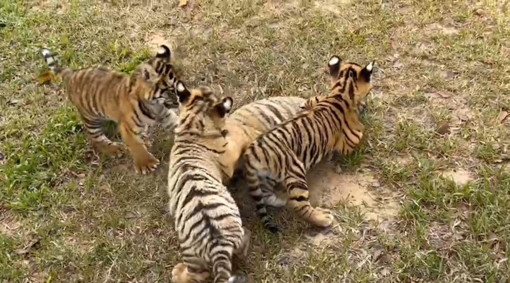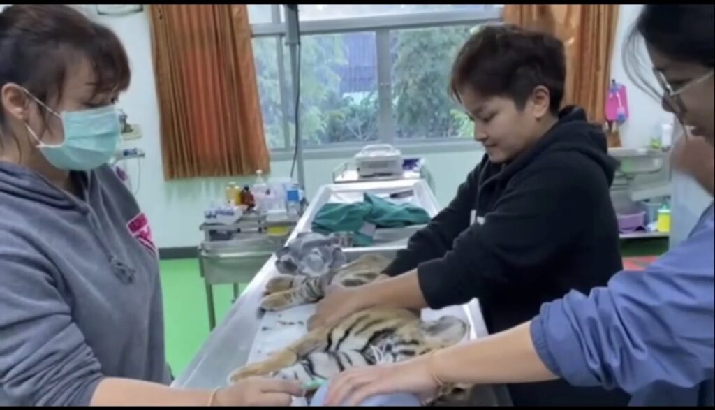 สำหรับลูกเสือโคร่ง “ข้ามแดน” ขณะที่ตรวจยึดมานั้น ตรวจสอบเบื้องต้นน่าจะมีอายุมากที่สุด เพราะขนาด/ลักษณะของฟันยาวกว่าตัวอื่นๆ และน้ำหนักจะมากกว่าตัวอื่น แต่หลังจากนำมาดูแล “ข้ามแดน” กลับกินน้ำนมน้อยกว่าตัวอื่นๆ และโตช้ากว่าตัวอื่นๆ มีอาการซึม ไม่ขี้เล่น ต่างจากอีก 3 ตัว