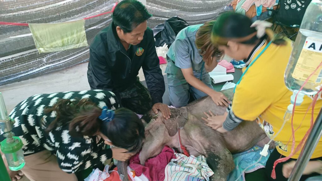 ในเวลา 04.00 น. เริ่มอ่อนแรงมากขึ้น ไม่ตอบสนองต่อสิ่งกระตุ้นและหายใจลำบาก ทีมสัตวแพทย์ทำการรักษาต่อเนื่อง กระทั่งเวลา 08.00 น. ลูกช้างไม่ตอบสนองต่อการรักษา ทีมสัตวแพทย์ทำการกู้ชีพ แต่ไม่มีการตอบสนองของสัญญาณชีพและได้ล้มลงอย่างสงบเมื่อเวลา 08.24 น.
