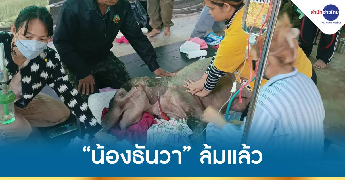 นายอนันต์ ศรีผุดผ่อง หัวหน้าเขตห้ามล่าสัตว์ป่าบึงฉวากและศูนย์พัฒนาจัดการสัตว์ป่าบึงฉวากเปิดเผยว่า “น้องธันวา” ลูกช้างป่าพลัดหลงเพศเมียที่กรมอุทยานแห่งชาติ สัตว์ป่า และพันธุ์พืชนำมาดูแลรักษาได้ล้มแล้วเมื่อเวลา 08.24 น. วันนี้ โดยได้รับรายงานจากสพ.ญ.ณฐนน ปานเพ็ชร นายสัตวแพทย์ปฏิบัติการเขตห้ามล่าสัตว์ป่าบึงฉวากและศูนย์พัฒนาการจัดการสัตว์ป่าบึงฉวากว่า ตั้งแต่เวลาประมาณ 00.00 น. ลูกช้างป่าธันวามีภาวะท้องเสีย มีอาการอ่อนแรงมาก ไม่ยอมใช้ขายันพื้นเพื่อยืน แต่ยังคงกินอาหารได้ ต่อมาเวลา 03.00 น. มีอาการอ่อนแรงต่อเนื่อง ทีมสัตวแพทย์ได้รักษาประคับประคองอาการ โดยการให้สารน้ำ เสริมเกลือแร่เพื่อชดเชยการสูญเสียแร่ธาตุ ให้ออกซิเจน และพยายามควบคุมอุณหภูมิร่างกายให้เกิดความอบอุ่นเนื่องจากอากาศค่อนข้างเย็นประมาณ 17-18 องศาเซลเซียส
