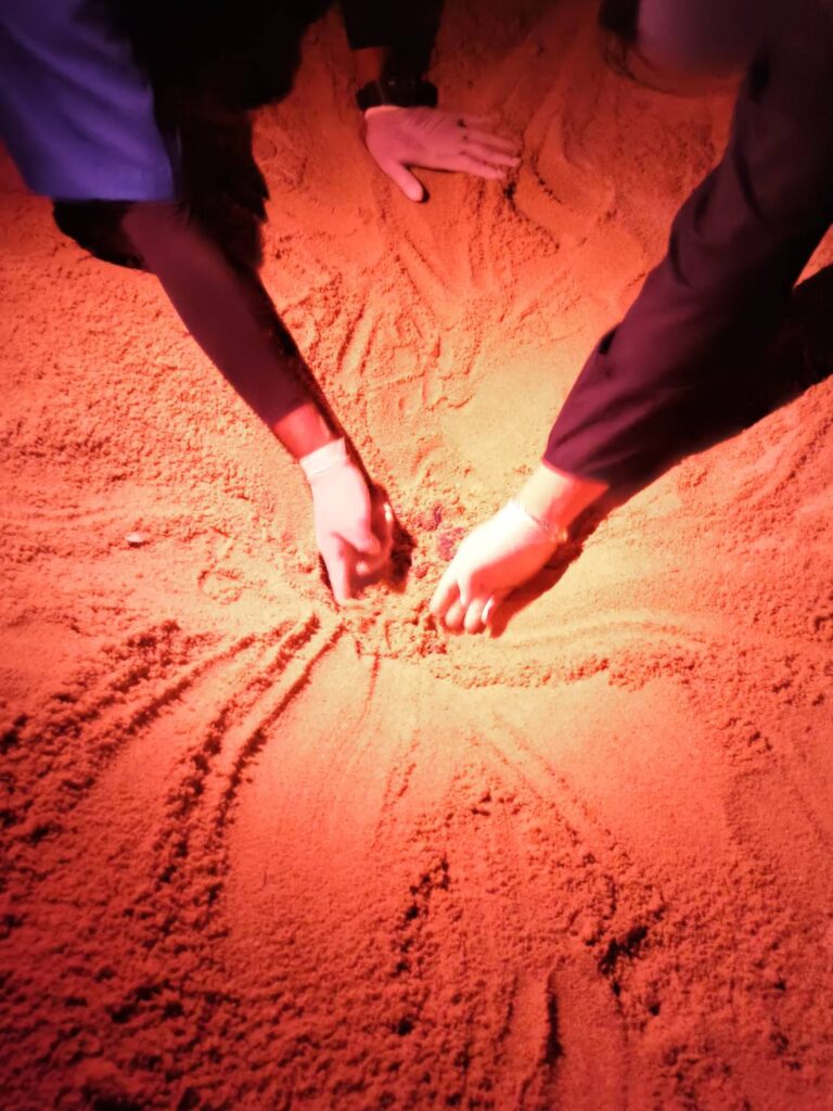 ทั้งนี้หลังจากปากหลุมฟักยุบตัว หากปล่อยไว้เป็นเวลานาน แล้วลูกเต่ามะเฟืองไม่สามารถออกจากหลุม อาจส่งผลให้ตายได้ ทีมสัตวแพทย์และผู้เชี่ยวชาญจึงตัดสินใจเปิดปากหลุมเพื่อให้ลูกเต่ามะเฟืองที่ฟักตัวคลานออกมา แต่เมื่อขุดลงไปกลับพบรากไม้ที่มีขนาดใหญ่และเป็นรากฝอยเป็นจำนวนมาก จึงเร่งช่วยเหลือลูกเต่ามะเฟืองที่ฟักออกจากไข่แล้ว ขึ้นมาจากหลุม จากนั้นได้นำตัวที่แข็งแรงปล่อยคืนสู่ธรรมชาติ 64 ตัว ส่วนตัวที่อ่อนแอ 4 ตัวรอการพักฟื้นในตู้ ICU Box อีกทั้งยังพบไข่เต่ามะเฟืองที่ไม่พัฒนา 37 ฟอง และลูกเต่ามะเฟืองตายแรกคลอด 1 ตัว โดยรวมทั้งหมดแม่เต่ามะเฟืองขึ้นมาวางไข่ 106 ฟองซึ่งผลการฟักพบว่า มีอัตราการรอดสูงถึง 98%