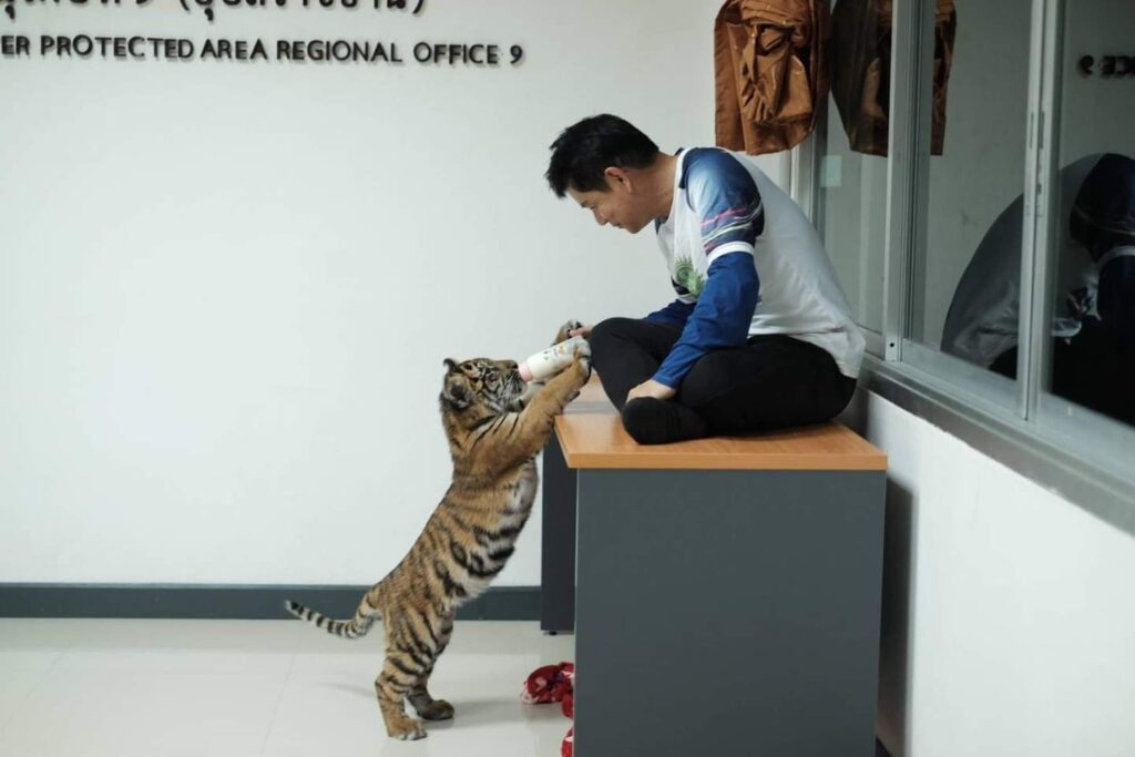นายชัยวัฒน์กล่าวถึงสาเหตุที่ต้องนำลูกเสือโคร่งของกลางทั้ง 3 ตัวไปอนุบาลต่อที่ศูนย์พัฒนาการจัดการสัตว์ป่าบึงฉวาก จังหวัดสุพรรณบุรีแทนที่สถานีเพาะเลี้ยงสัตว์ป่าจุฬาภรณ์ จังหวัดศรีสะเกษซึ่งกำหนดไว้เดิมเนื่องจากด้านงบประมาณและจำนวนบุคลากรซึ่งที่ศูนย์พัฒนาการจัดการสัตว์ป่าบึงฉวากพร้อมกว่าจึงเป็นเรื่องดีต่อการดูแลสุขภาพของลูกเสือ แต่ขณะนำลูกเสือมาขึ้นรถตู้นั้น สัตวแพทย์ที่ดูแล “มุกดา-สะหวัน-ข้ามโขง” ตั้งแต่ช่วยเหลือจากขบวนการลักลอบค้าสัตว์ป่ามา ถึงกับหลั่งน้ำตาเนื่องจากรักและผูกพันมาก