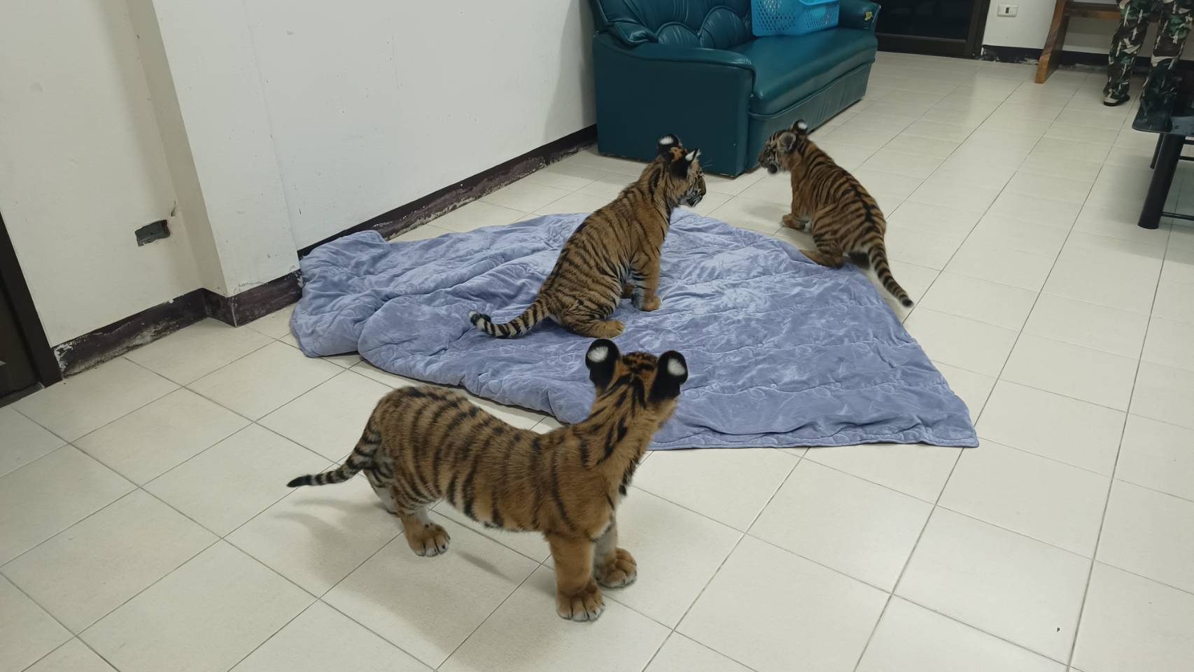 นายอนันต์ ศรีผุดผ่อง หัวหน้าเขตห้ามล่าสัตว์ป่าบึงฉวาก และศูนย์พัฒนาการจัดการสัตว์ป่าบึงฉวาก กล่าวว่า สัตวแพทย์ยังคงติดตามอาการของลูกเสือโคร่งของกลาง 3 ตัว ที่เคลื่อนย้ายมาจากสำนักบริหารพื้นที่อนุรักษ์ที่ 9 (อุบลราชธานี) มาถึงศูนย์พัฒนาการจัดการสัตว์ป่าบึงฉวาก จังหวัดสุพรรณบุรี เช้าวันนี้ (18 ม.ค.) จากการตรวจสุขภาพพบว่า ทั้ง 3 ตัว เป็นปกติ ร่าเริง และกินนมเก่ง โดยอนุบาลอยู่ที่อาคารพยาบาล