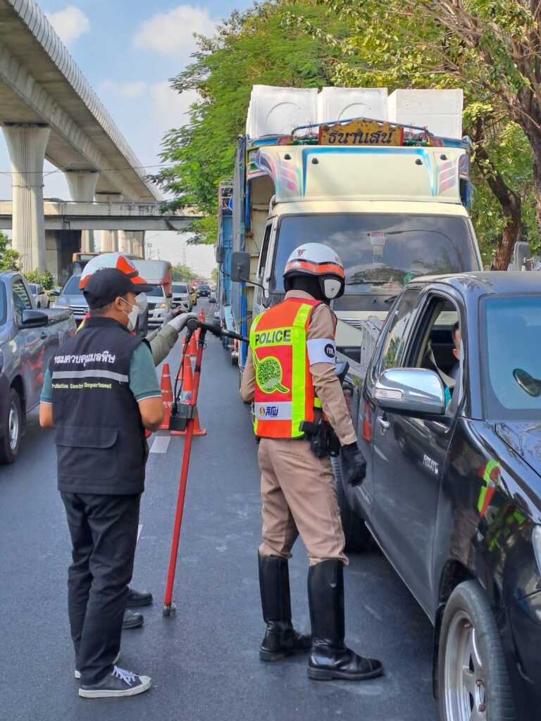 ตั้งแต่เดือนตุลาคม 2565 -27 มกราคม 2566 คพ. ร่วมกับ กรมการขนส่งทางบก (ขบ.) กองบังคับการตำรวจจราจร (บก.จร.) และกรุงเทพมหานคร ตรวจควันดำรถทุกประเภท (รถบรรทุก รถรับจ้างประจำทาง รถรับจ้างไม่ประจำทาง) ในพื้นที่ กทม.และปริมณฑลรวม 39,909 คัน เกินค่ามาตรฐานและพ่นห้ามใช้ 178 คัน โดยแยกเป็นรถบรรทุก 30,794 คัน พ่นห้ามใช้ 135 คัน รถโดยสารประจำทาง 7,528 คัน พ่นห้ามใช้ 38 คัน และรถโดยสารไม่ประจำทาง 1,587 คัน พ่นห้ามใช้ 5 คัน และผลการตรวจทั่วประเทศ ตรวจแล้ว 81,759 คัน เกินค่ามาตรฐานและพ่นห้ามใช้ 597 คัน (ค่ามาตรฐานความทึบแสงไม่เกินร้อยละ 30)