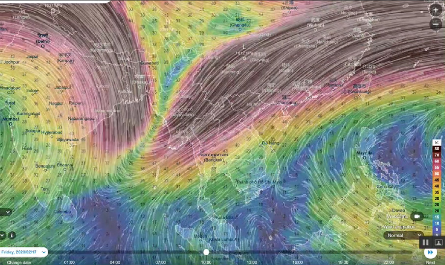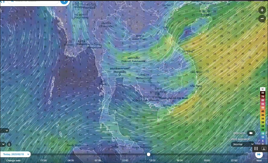 ทั้งนี้ระหว่างวันที่ 16 – 18 ก.พ. มีคลื่นกระแสลมตะวันตกจากทางด้านประเทศเมียนมาร์พัดปกคลุมภาคเหนือ ภาคตะวันออกเฉียงเหนือตอนบน ทำให้ภาคเหนือได้แก่ จังหวัดแม่ฮ่องสอน เชียงใหม่ เชียงราย ลำพูน ลำปาง พะเยา น่าน และแพร่ ภาคตะวันออกเฉียงเหนือตอนบนได้แก่ จังหวัดเลยและหนองบัวลำภูมีพายุฝนฟ้าคะนอง และมีลมกระโชกแรง และอาจมีลูกเห็บตกเกิดขึ้นได้ จึงต้องติดตามและเฝ้าระวังอย่างใกล้ชิด ขณะที่ภาคใต้จะมีฝนบางพื้นที่และคลื่นลมแรงขึ้น จึงต้องติดตามและเฝ้าระวังอย่างใกล้ชิด