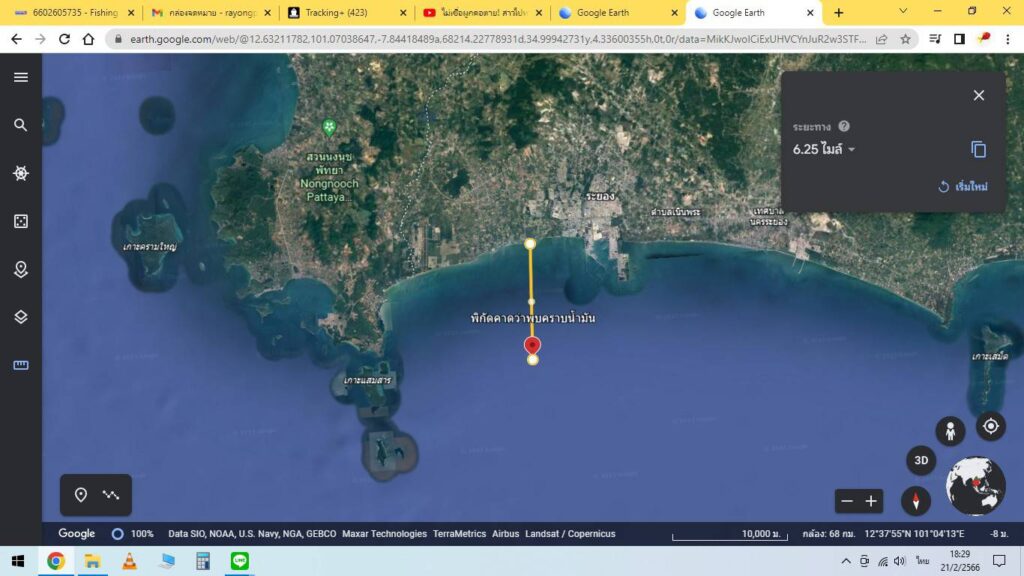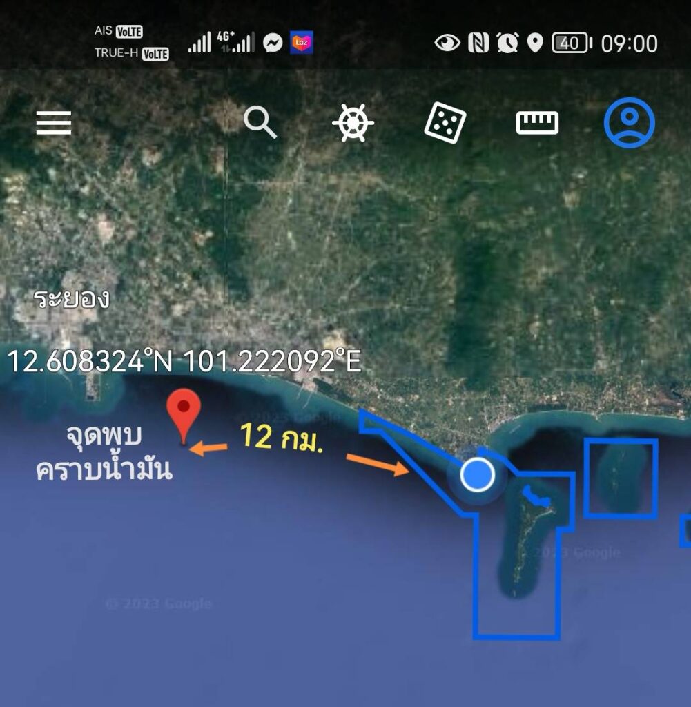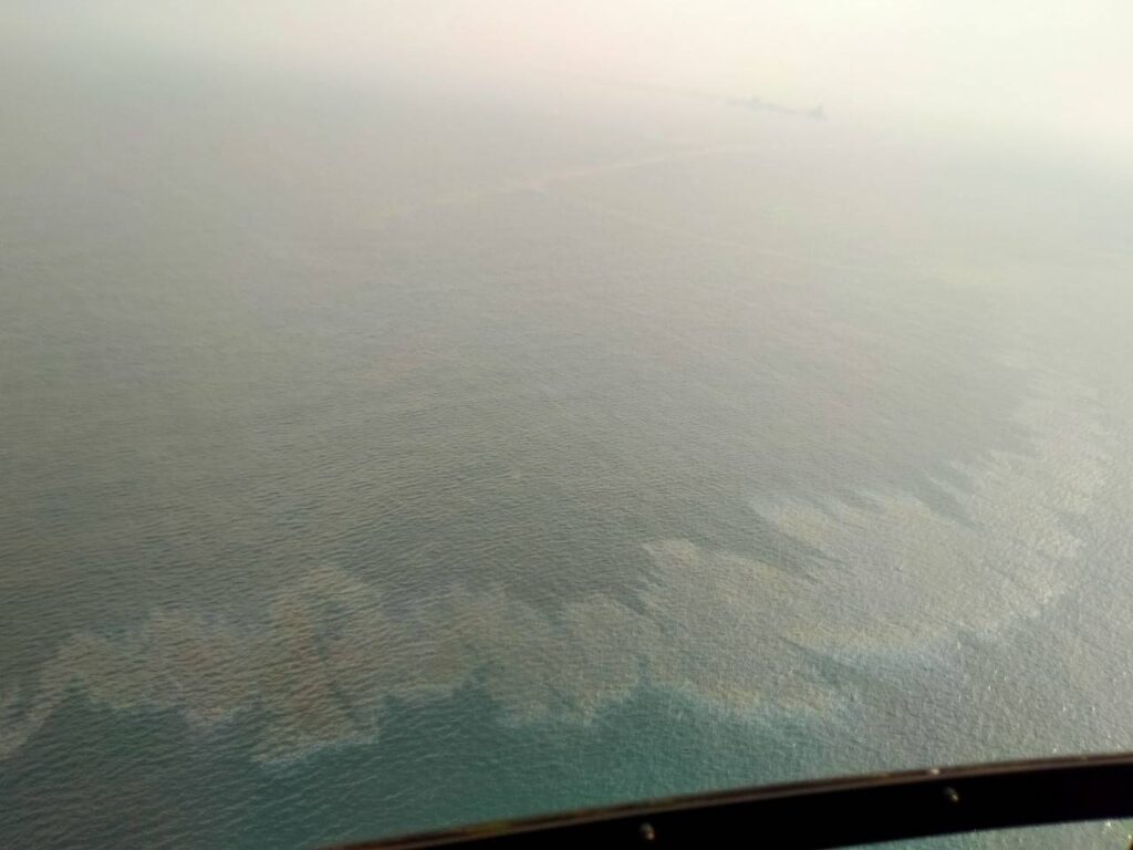 ทั้งนี้ได้ประสานงานกับศูนย์อำนวยการรักษาผลประโยชน์ของชาติทางทะเล (ศรชล.) และกรมทรัพยากรทางทะเลและชายฝั่ง (ทช.) เข้าตรวจสอบ พบคราบน้ำมัน บริเวณพิกัด 12 องศา 35 ลิปดา ลองจิจูด 101 องศา 05 ลิปดา มีลักษณะเป็นแผ่นฟิล์มบางๆ คล้ายน้ำปนเปื้อนน้ำมันจากน้ำท้องเรือ