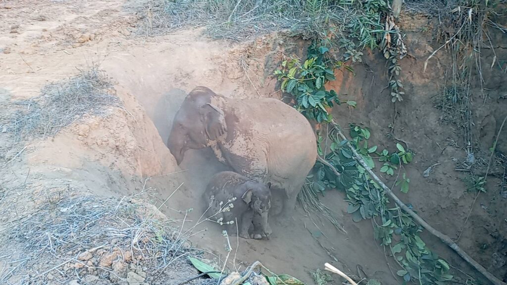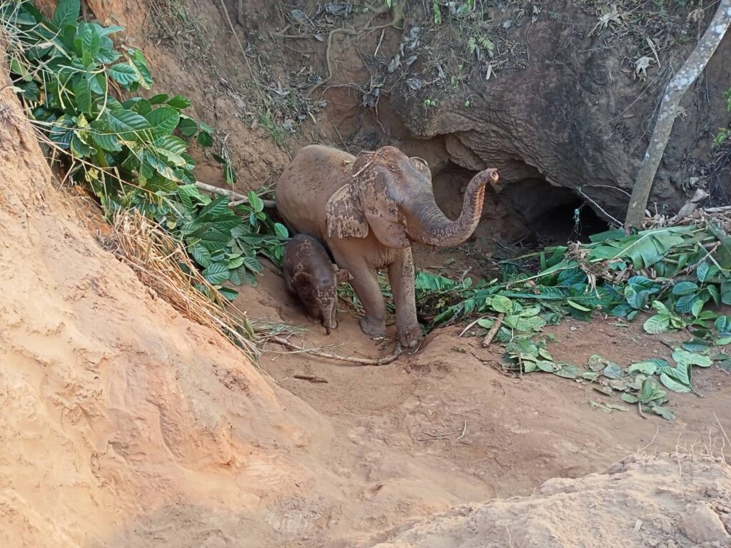 นายอนันต์ โพธิ์พันธุ์ ผู้อำนวยการสำนักบริหารพื้นที่อนุรักษ์ที่ 3 (สบอ. 3) (บ้านโป่ง) กล่าวว่า เช้าวันนี้เจ้าหน้าที่กรมอุทยานแห่งชาติ สัตว์ป่า และพันธุ์พืชสามารถช่วยเหลือช้างป่าแม่ลูกที่พลัดตกลงไปในหลุมยุบบริเวณหมู่ที่ 7 บ้านชะอี้ ต. ชะแล อ. ทองผาภูมิ จ. กาญจนบุรีได้แล้ว โดยช้างป่าทั้ง 2 ตัวเป็นช้างที่อาศัยอยู่ในอุทยานแห่งชาติลำคลองงู เขตป่าสงวนแห่งชาติป่าเขาบ่อแร่ แปลงที่ 2 ซึ่งออกมาหากินพร้อมโขลง แล้วพลัดตกลงไป หลุมยุบนี้กว้างกว่า 5 เมตร ลึกกว่า 4 เมตรทำให้ช้างไม่สามารถขึ้นมาเองได้