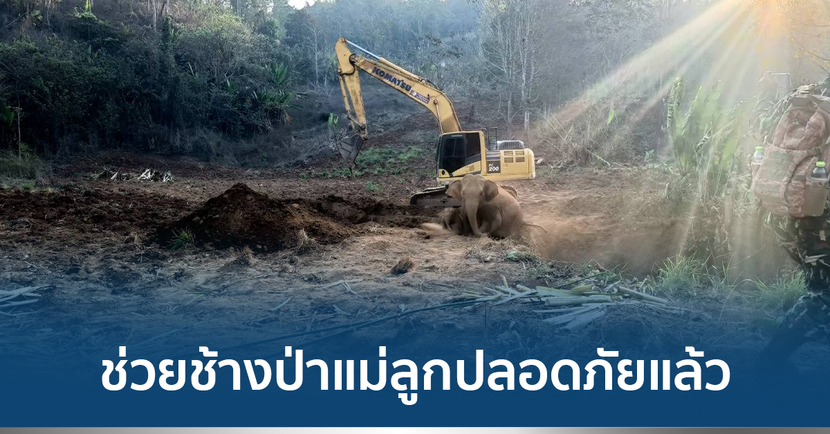 กาญจนบุรี 27 ก.พ.- กรมอุทยานฯ ช่วยเหลือช้างป่าแม่ลูกที่ตกหลุมยุบในเขต อ.ทองผาภูมิ จ.กาญจนบุรี สำเร็จแล้ว ด้วยการนำแบ็กโฮปรับลดความลาดชันของหลุมเพื่อให้ช้างทั้ง 2 ตัวเดินขึ้นมาได้ พร้อมผลักดันกลับเข้าเขตอุทยานแห่งชาติลำคลองงู