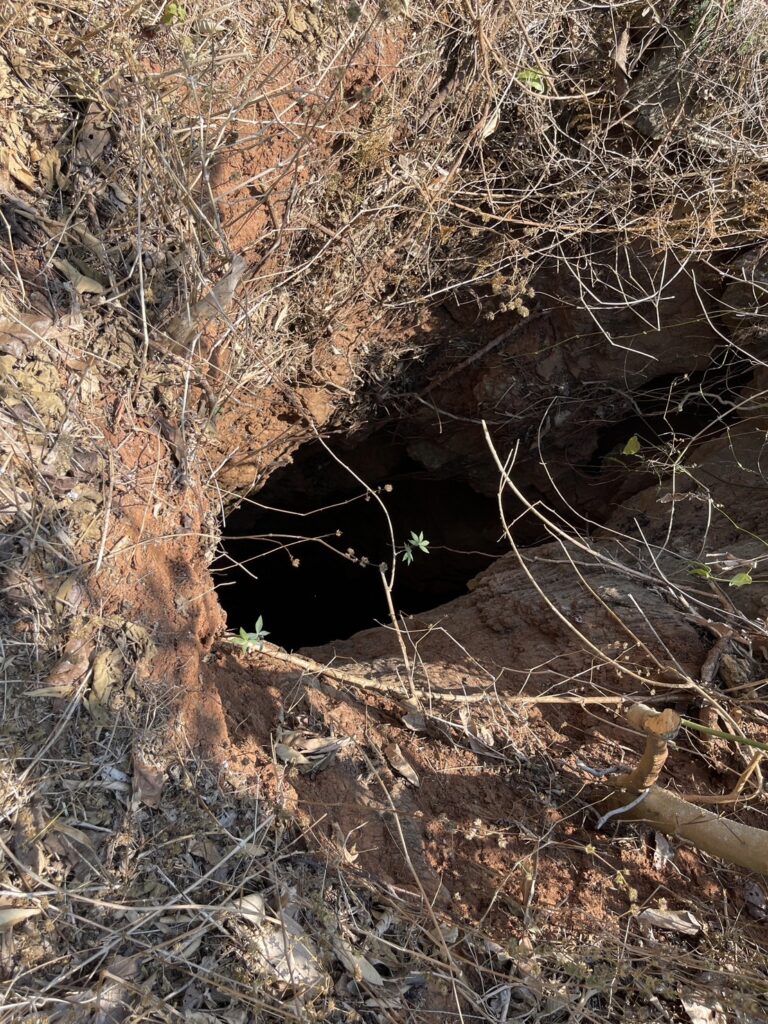 - หลุมที่ 2 เนื่องจากหลุมมีขนาดปากหลุมที่แคบ ลึก ปากหลุมมีก้อนหินขนาดใหญ่ล้อมรอบ จึงต้องจัดหาท่อนไม้และเสาปูนที่ไม่ได้ใช้งานแล้วนำมาปิดปากหลุม ให้แคบลง