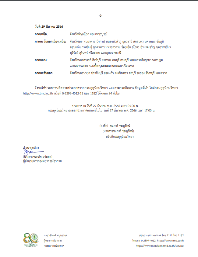 จกกนั้นอากาศบริเวณประเทศตอนบนจะกลับมาร้อนเหมือนเดิมตั้งแต่วันที่ 30 มีนาคม – 4 เมษายน 2566