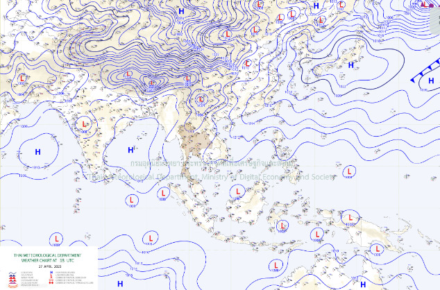 สำหรับสภาพอากาศวันนี้ถึงวันพรุ่งนี้ ลมใต้และลมตะวันออกเฉียงใต้ที่พัดนำความชื้นจากอ่าวไทยและทะเลจีนใต้เข้ามาปกคลุมประเทศไทยตอนบนมีกำลังอ่อนลง ทำให้ประเทศไทยตอนบนมีฝนฟ้าคะนอง และลมกระโชกแรงบางแห่ง ขอให้ประชาชนในภาคเหนือระวังอันตรายจากฝนฟ้าคะนองและลมกระโชกแรงไว้ด้วย