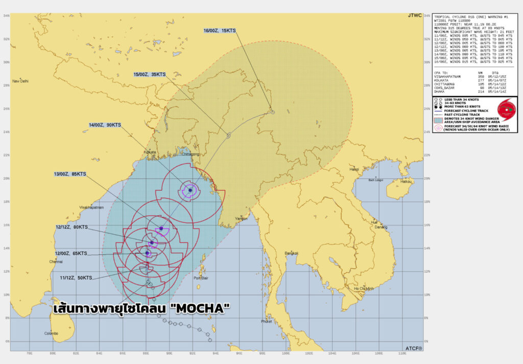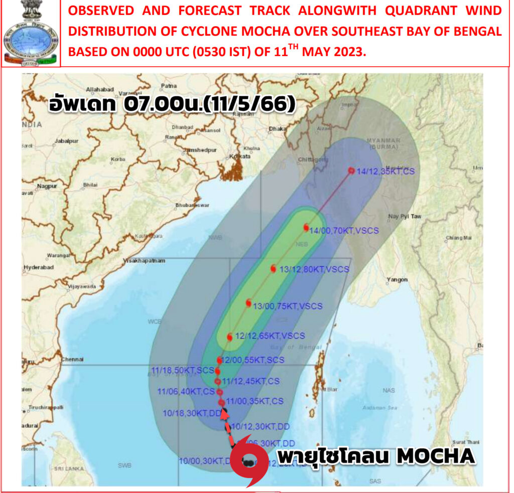 นางสาวชมภารี ชมภูรัตน์ อธิบดีกรมอุตุนิยมวิทยากล่าวว่า พายุดีเปรสชันในอ่าวเบงกอลตอนบนทวีกำลังแรงขึ้นเป็นพายุไซโคลนชื่อว่า “MOCHA” (โมคา มอคค่า หรือมูคา) ซึ่งเป็นเมืองท่าเมืองหนึ่งของประเทศเยเมนซึ่งที่มีชื่อเสียงมีชื่อเสียงในฐานะดินแดนแรกของโลกที่มีการค้าขายกาแฟ
