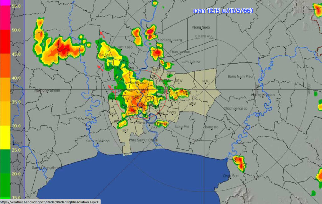 ในช่วงสายวันนี้มีฝนตกเล็กน้อยถึงปานกลางและมีฝนตกหนักบางแห่งบริเวณกรุงเทพฯ ในเขตบางซื่อ จตุจักร บางกะปิ ดอนเมือง ดินแดง บางพลัด ดุสิต ห้วยขวาง มีนบุรี บางบอน ตลิ่งชัน บางกอกน้อย บางพลัด บางบอน และภาษีเจริญ จากการตรวจสอบเรดาห์ตรวจอากาศล่าสุดเมื่อเวลา 12.15 น. กลุ่มเคลื่อนตัวทิศตะวันออกเฉียงเหนือแนวโน้มคงที่ โดยฝนรวมสูงสุด 3 ชั่วโมงที่เขตบางพลัด 64.00 มิลลิเมตร.-สำนักข่าวไทย