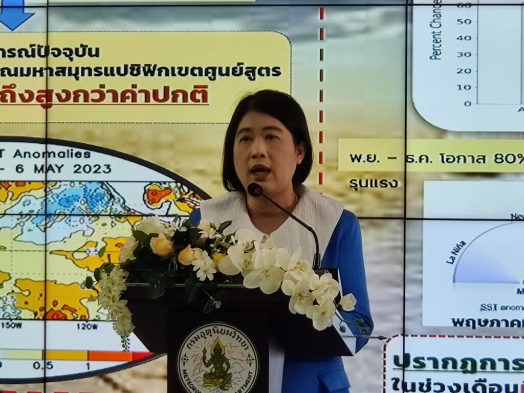 นางสาวชมภารี ชมภูรัตน์ อธิบดีกรมอุตุนิยมวิทยา กล่าวว่า ระยะนี้ยังมีอากาศร้อนถึงร้อนจัดบางพื้นที่ แม้จะเข้าสู่ฤดูฝนตั้งแต่วันที่ 22 พฤษภาคมที่ผ่านมา แต่ฝนยังไม่ตกกระจาย เนื่องจากกำลังจะเข้าสู่สภาวะเอลนีโญที่จะส่งผลให้ปริมาณฝนตลอดปี 2566 น้อยกว่าค่าปกติ โดยอุณหภูมิสูงสุดวานนี้ (4 มิ.ย.66) 3 อันดับแรก ได้แก่ จังหวัดอุตรดิตถ์ 39.7 องศาเซลเซียส เพชรบูรณ์และน่าน 39.6 องศาเซลเซียส
