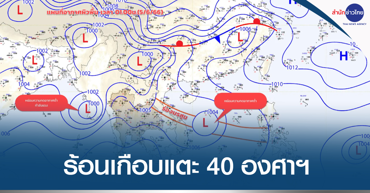 กรุงเทพฯ 5 มิ.ย.- กรมอุตุฯ ชี้ต้นฤดูฝนนี้ หลายพื้นที่ยังมีอากาศร้อนถึงร้อนจัด โดย 3 อันดับแรก จ.อุตรดิตถ์ เพชรบูรณ์ และน่าน เกือบแตะ 40 องศาฯ เหตุจะเข้าเอลนีโญ ฝนยังไม่ตกกระจาย ล่าสุดมีร่องมรสุมพาดผ่านภาคอีสานตอนบน ส่งผลมีฝนตกเพิ่มทุกภาค ช่วยผ่อนคลายความร้อน โดยจะมีฝนตกหนัก 10 จว.ในภาคตะวันออกและภาคใต้ฝั่งอันดามัน ระวังน้ำท่วมฉับพลัน น้ำป่าไหลหลาก และน้ำล้นตลิ่ง รวมถึงคลื่นลมแรง