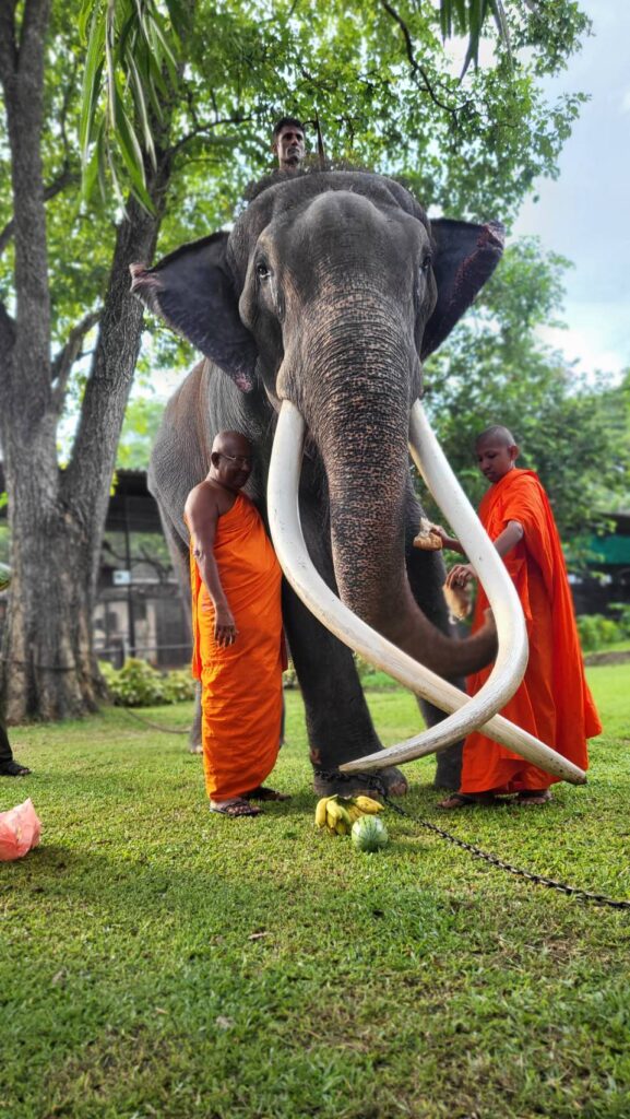 เจ้าอาวาสได้นำอาหารมาให้ช้าง สวนมนต์และให้พร ขอให้สิ่งศักดิ์สิทธิ์ปกป้องคุ้มครองให้ช้างเดินทางสู่มาตุภูมิอย่างปลอดภัย โดยมีชาวศรีลังกาจำนวนหนึ่งมาร่วมส่ง “พลายศักดิ์สุรินทร์” หรือชื่อในภาษาสิงหลว่า “มุทุราชา” หมายถึง ราชาแห่งไข่มุก