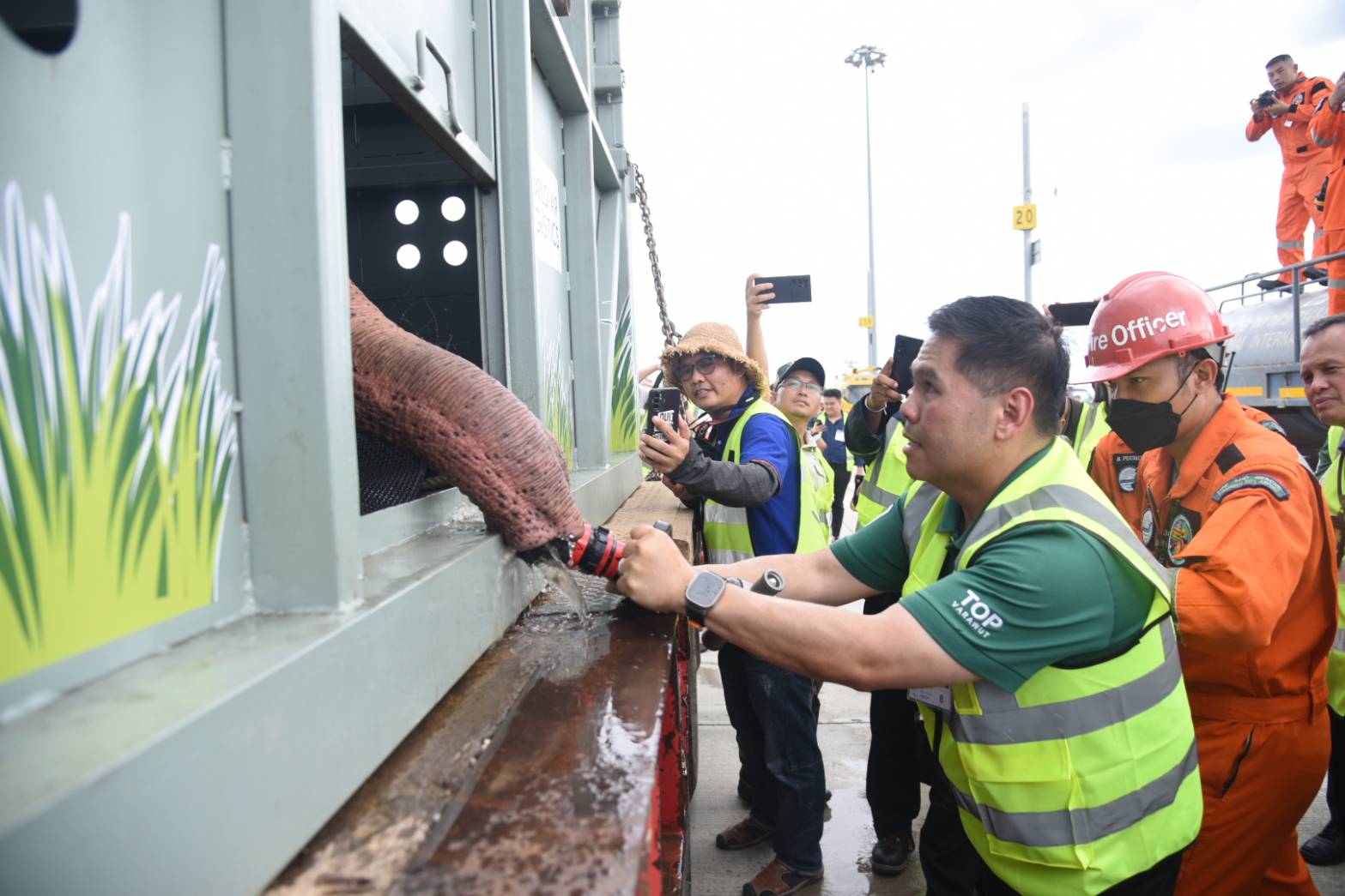 นายวราวุธ กล่าวขอบคุณควาญช้างทั้ง 4 คน ควาญช้างจากศรีลังกา และทีมสัตวแพทย์ทั้ง 2 คนที่อยู่บนเครื่อง ที่ดูแลพลายศักดิ์สุรินทร์เป็นอย่างดี โดยกัปตันได้รายงานว่า ไม่มีเหตุการณ์อะไรที่น่าวิตกกังวล พอลงจากเครื่อง พลายศักดิ์สุรินทร์มีอาการหิวน้ำ จึงกินน้ำเข้าไปจำนวนมาก มีการฉีดน้ำเข้าไปในกรง เพื่อให้อุณหภูมิลดลง ถือเป็นสัญญาณที่ดีที่อยากกินน้ำ กินน้ำได้ปริมาณมาก