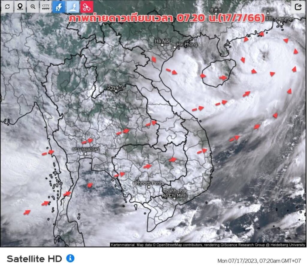 แม้พายุจะไม่เคลื่อนตัวเข้าสู่ประเทศไทยโดยตรง แต่ระหว่างวันที่ 17 -24 ก.ค. จะมีฝนเพิ่มขึ้น17 -24 ก.ค.66 เป็นช่วงที่ประเทศไทยจะฝนจะเพิ่มขึ้น ฝนยังเกิดขึ้นจากมรสุมตะวันตกเฉียงใต้และร่องมรสุมที่พาดผ่าน โดยพายุจะช่วยดึงมรสุมให้มีกำลังแรงขึ้น