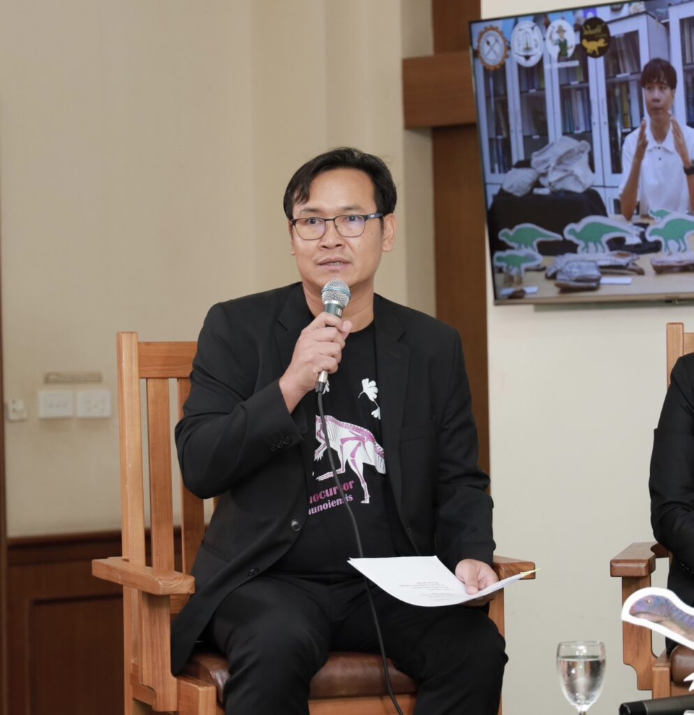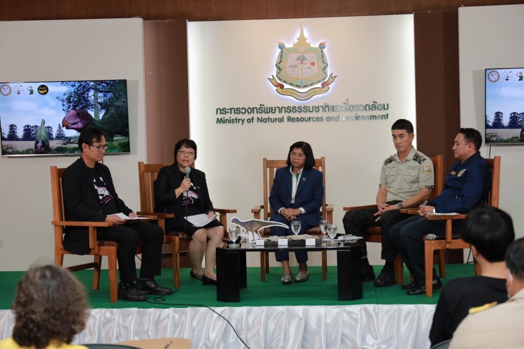 นางอรนุช หล่อเพ็ญศรี อธิบดีกรมทรัพยากรธรณีร่วมกับรองศาสตราจารย์มงคล อุดชาชน ผู้อำนวยการศูนย์วิจัยและการศึกษาบรรพชีวินวิทยา มหาวิทยาลัยมหาสารคามแถลงถึงการค้นพบไดโนเสาร์ชนิดใหม่ของโลก “มินิโมเคอร์เซอร์ ภูน้อยเอนซิส” (Minimocursor phunoiensis) ซึ่งเป็นไดโนเสาร์ตัวที่ 13 ของประเทศไทย