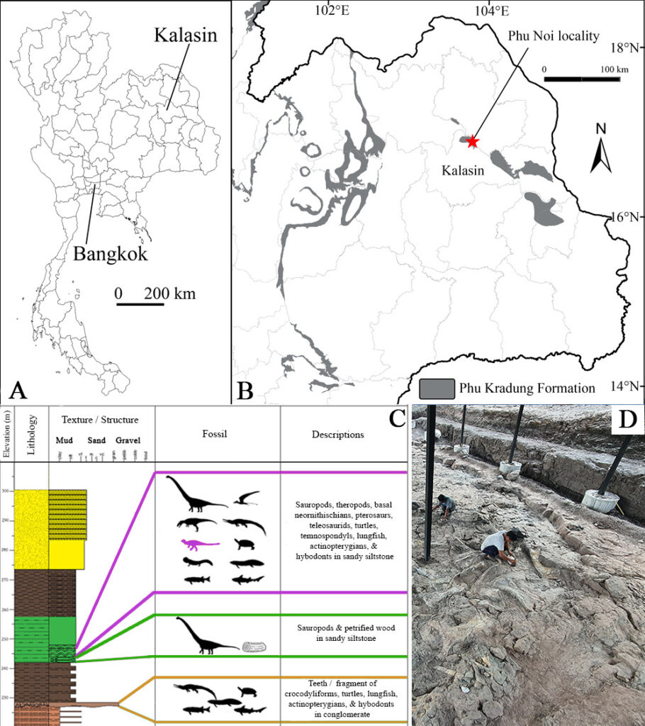 รองศาสตราจารย์มงคล อุดชาชน ผู้อำนวยการศูนย์วิจัยและการศึกษาบรรพชีวินวิทยา มหาวิทยาลัยมหาสารคาม กล่าวว่า แหล่งซากดึกดำบรรพ์ภูน้อยแห่งนี้เป็นพื้นที่ศึกษาวิจัยซากดึกดำบรรพ์สัตว์มีกระดูกสันหลังที่มีศักยภาพสูง ก่อนหน้านี้มีการค้นพบชนิดพันธุ์ใหม่ของโลกมากถึง 7 ชนิดที่ตีพิมพ์ในบทความทางวิชาการในวารสารระดับนานาชาติร่วมกับ กรมทรัพยากรธรณี และผู้เชี่ยวชาญจากต่างประเทศ และไดโนเสาร์ตัวนี้เป็นชนิดที่ 8 จากแหล่งภูน้อย อีกทั้งเป็นไดโนเสาร์สายพันธุ์ใหม่ตัวแรกในพื้นที่อุทยานธรณีกาฬสินธุ์