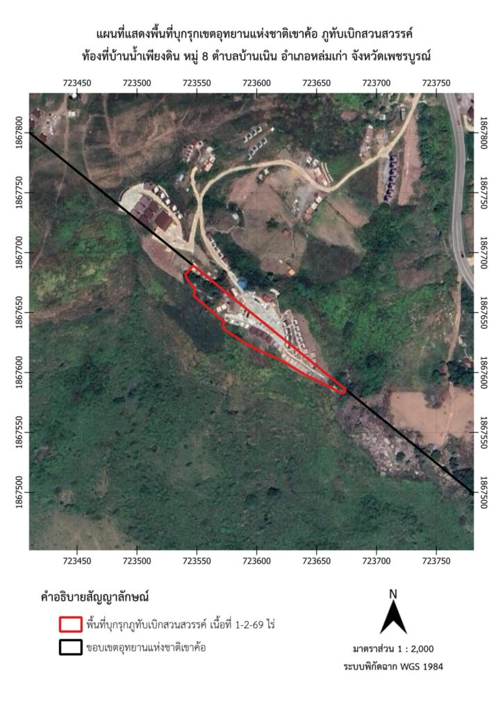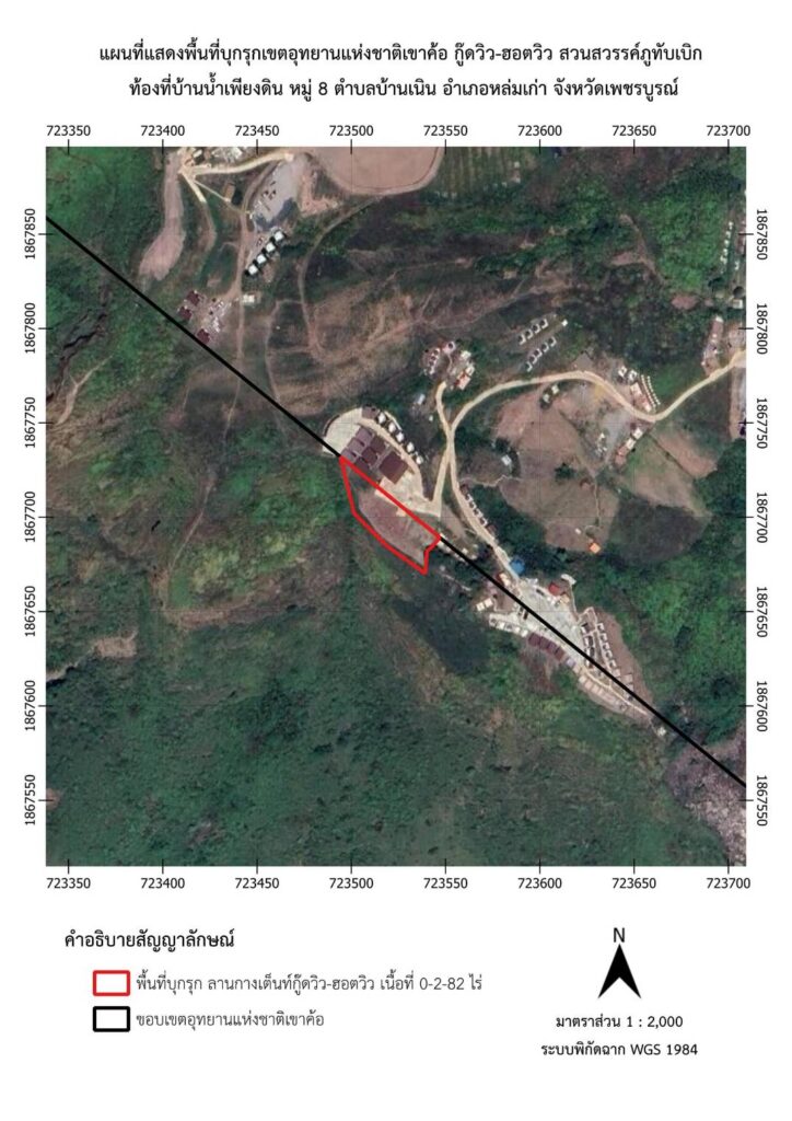 - กู๊ดวิว-ฮอตวิว สวนสวรรค์ภูทับเบิก มีการบุกรุก พื้นที่ 0 – 2 – 82 ไร่ เพื่อใช้เป็นลานกางเต็นท์