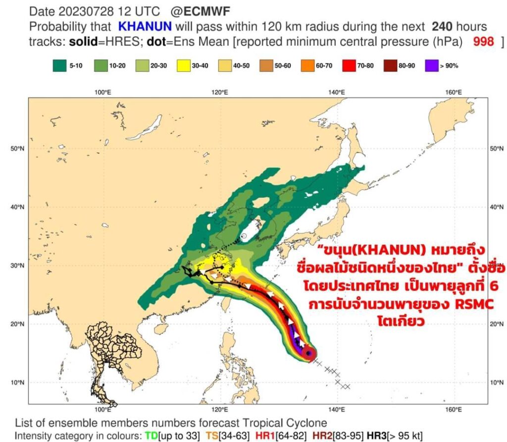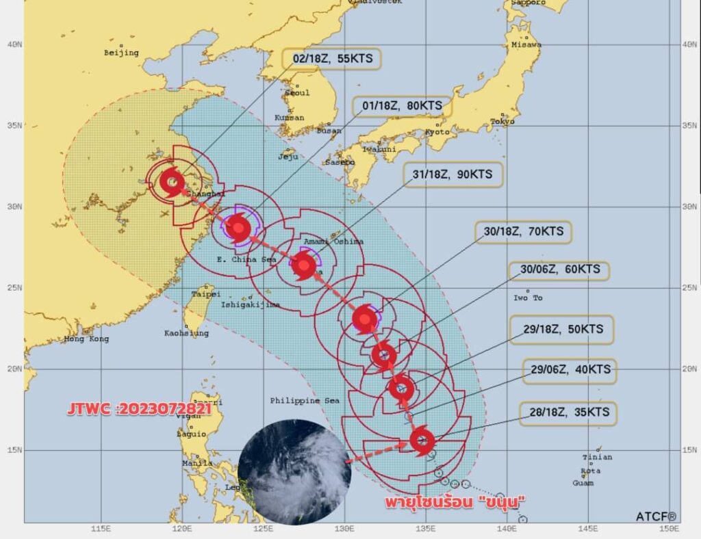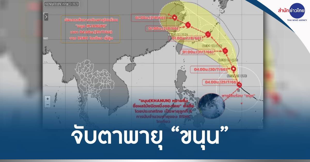 นางสาวชมภารีกล่าวว่า ระยะนี้มีพายุโซนร้อนลูกที่ 6 ก่อตัวขึ้น ชื่อ “ขนุน (KHANUN)” โดยศูนย์กลางอยู่ในมหาสมุทรแปซิฟิก กำลังเคลื่อนตัวทางตะวันตกเฉียงเหนือ คาดว่า จะทวีกำลังแรงขึ้นได้อีก พายุเคลื่อนตัวทางตะวันตกเฉียงเหนือค่อนไปทางเหนือ ยังไม่ได้มีทิศทางเคลื่อนเข้าสู่ประเทศไทย จึงไม่มีผลกระทบกับประเทศไทย แต่กรมอุตุนิยมวิทยาจะติดตามอย่างใกล้ชิด