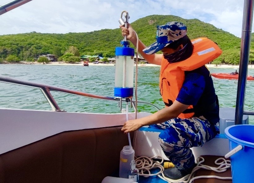 จากการตรวจวัดคุณภาพน้ำเบื้องต้น มีค่าอุณหภูมิ 30.1-31.2 องศาเซลเซียส ความเค็ม 30.9-31.8 ppt (ส่วนในพัน) ความเป็นกรดและด่าง 8.16-8.31 และออกซิเจนละลาย 4.20-7.69 มิลลิกรัมต่อลิตร ซึ่งอยู่ในเกณฑ์มาตรฐานคุณภาพน้ำทะเลประเภทที่ 4 เพื่อการนันทนาการ โดยยังไม่ส่งผลกระทบต่อสัตว์น้ำ