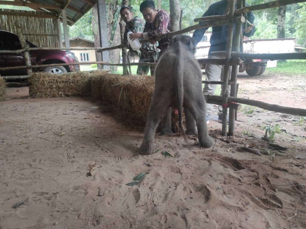 - ให้เกลือแร่ผสมน้ำป้อนลูกช้าง โดยงดนมเนื่องจากถ่ายเหลว