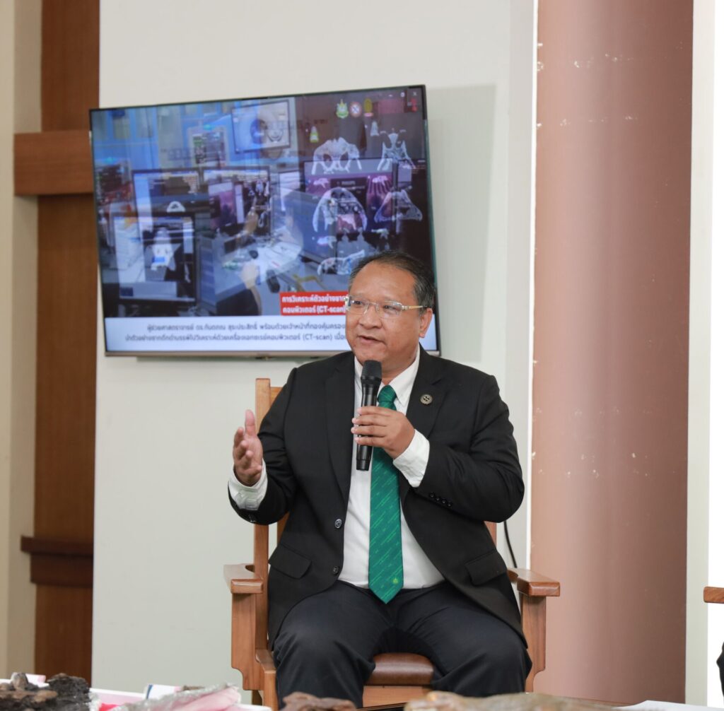 นายฐิติพันธ์ จูจันทร์โชติ รองอธิบดีกรมทรัพยากรธรณีเป็นประธานการแถลงข่าวผลการศึกษาศึกษาวิจัยซากดึกดำบรรพ์ของ อัลลิเกเตอร์สายพันธุ์ใหม่ของโลก โดยกรมทรัพยากรธรณีร่วมกับทีมนักวิจัยจากมหาวิทยาลัยทือบิงเกน ประเทศเยอรมนี นำโดย Dr.Gustavo Darlim และภาควิชาธรณีวิทยา คณะวิทยาศาสตร์ จุฬาลงกรณ์มหาวิทยาลัย