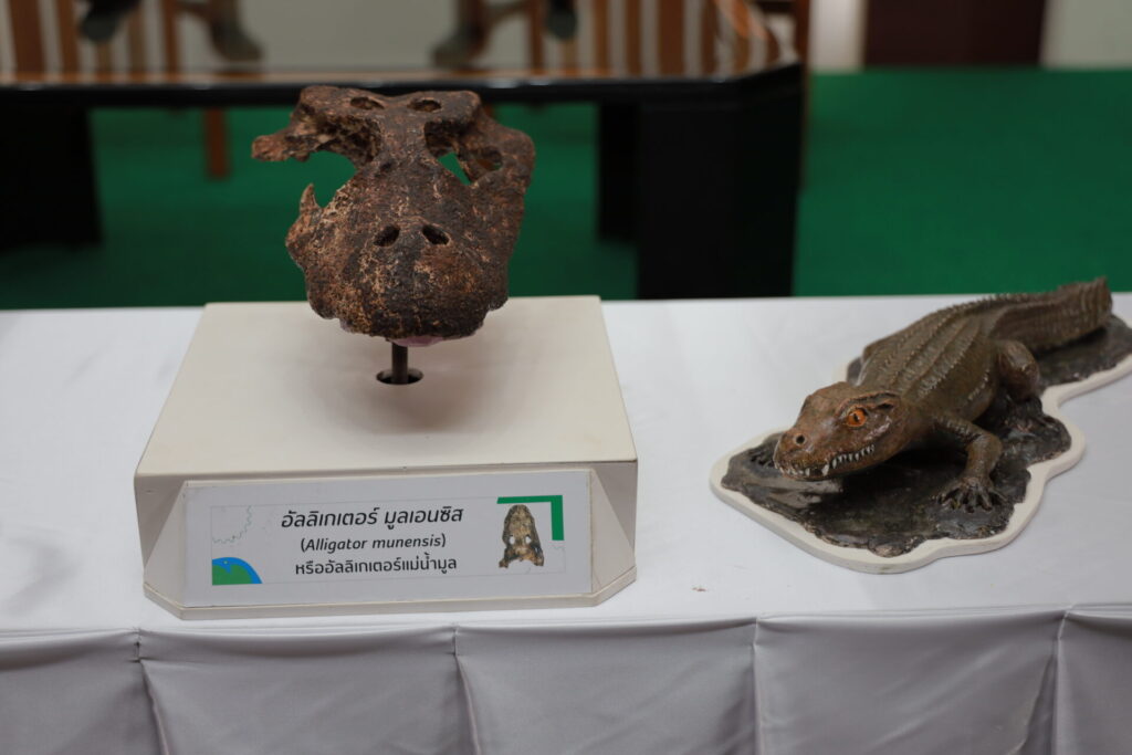 กรุงเทพฯ 18 ต.ค. – กระทรวงทรัพยากรธรรมชาติและสิ่งแวดล้อม (ทส.) โดยกรมทรัพยากรธรณี (ทธ.) ร่วมกับภาควิชาธรณีวิทยา คณะวิทยาศาสตร์ จุฬาลงกรณ์มหาวิทยาลัยแถลงผลการศึกษาวิจัยซากดึกดำบรรพ์ของ อัลลิเกเตอร์สายพันธุ์ใหม่ของโลก “อัลลิเกเตอร์ มูลเอนซิส (Alligator munensis) หรืออัลลิเกเตอร์แม่น้ำมูล” โดยพบว่า มีอายุประมาณ 230,000 ปีก่อน
