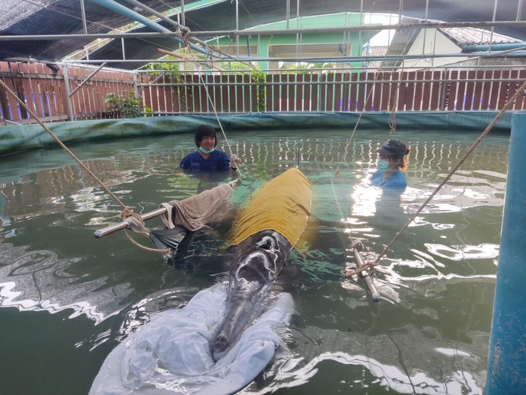 นายสัตวแพทย์ รัตนากร พากเพียร นายสัตวแพทย์กรมทรัพยากรทางทะเลและชายฝั่ง กล่าวว่า เย็นวานนี้ขนย้ายวาฬจากร่องน้ำบริเวณหาดสะกอม อ.เทพา มารักษาที่บ่อน้ำขนาดใหญ่ของจากศูนย์วิจัยและพัฒนาเทคโนโลยีและนวัตกรรมสัตว์น้ำ (NICA) อ.เมือง จ.สงขลา เนื่องจากสภาพพื้นที่และสภาพน้ำบริเวณที่ดูแลรักษาอยู่เดิมไม่เหมาะสม