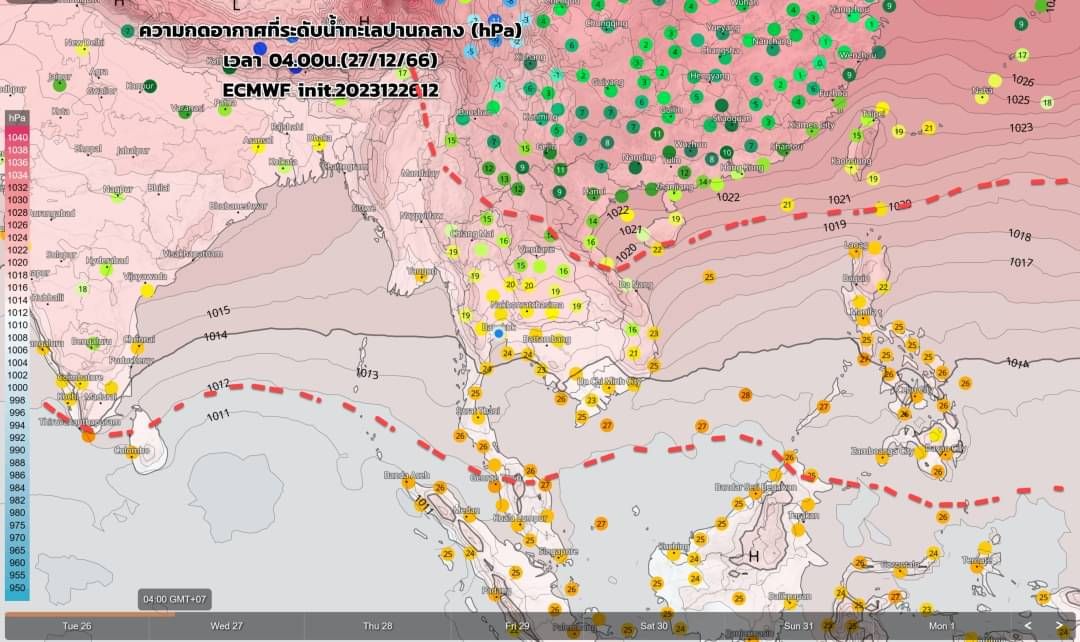 กรุงเทพฯ 27 ธ.ค. – กรมอุตุนิยมวิทยาเผย ภาคใต้ฝนจะเริ่มลดลง แต่ยังต้องเฝ้าระวังฝนที่ตกสะสมและน้ำคงค้างตามลุ่มน้ำต่างๆ ขณะที่ไทยตอนบน ลมหนาวเริ่มเบาลง แต่ะจะส่งผลให้ฝุ่น PM2.5 สะสมเพิ่มขึ้น