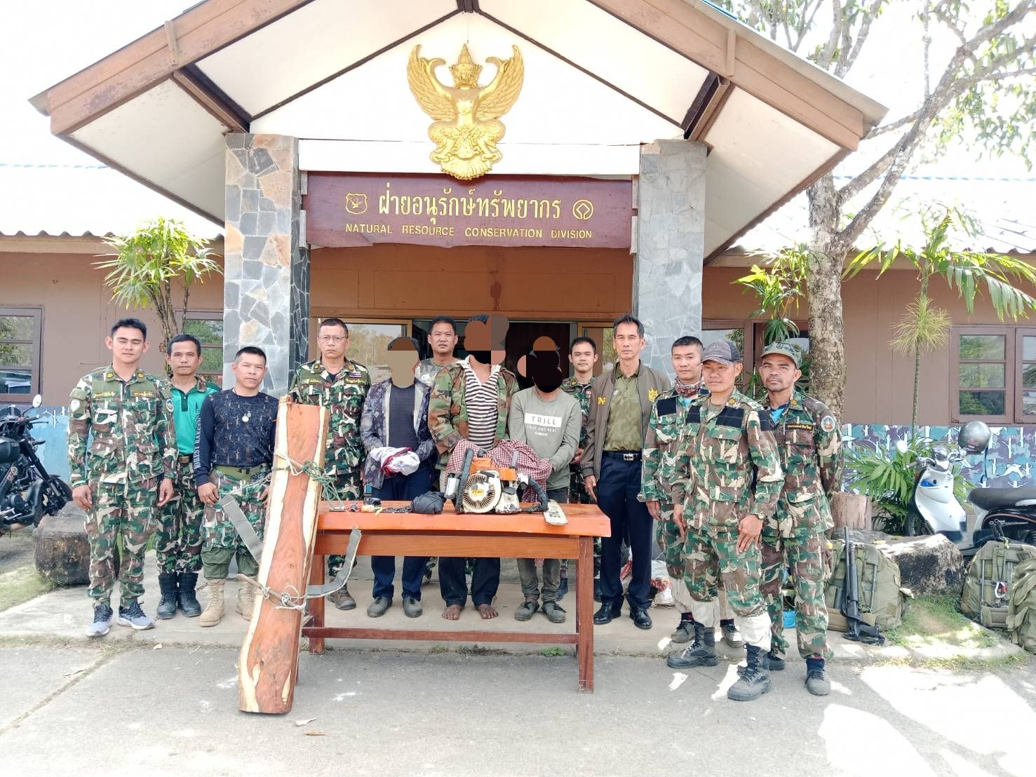 สำหรับการกระทำของผู้ถูกจับมีความผิดตามพระราชบัญญัติอุทยานแห่งชาติ พ.ศ. 2562 มาตรา 19 (2) ฐานร่วมกันเก็บหานำออกไป กระทำด้วยประการใดๆ ให้เป็นอันตรายหรือทำให้เสื่อมสภาพ ซึ่งไม้ ดิน หิน กรวด ทราย แร่ ปิโตรเลียม หรือทรัพยากรธรรมชาติอื่น (6) ฐานร่วมกันเข้าไปดำเนินกิจการใดๆ เพื่อหาผลประโยชน์ และมาตรา 56 บรรดาไม้ สัตว์ป่า ทรัพยากรธรรมชาติอื่นใดที่มีอยู่ในอุทยานแห่งชาติ วนอุทยาน สวนพฤกษศาสตร์ หรือสวนรุกขชาติที่บุคคลได้มาจากการกระทำความผิด หรืออาวุธ เครื่องมือ เครื่องใช้ สิ่งปลูกสร้าง อุปกรณ์ สัตว์พาหนะ ยานพาหนะ หรือเครื่องจักรกลใดๆ ที่บุคคลได้ใช้ในการกระทำผิด หรือมีไว้เพื่อใช้กระทำความผิด หรือได้ใช้เป็นอุปกรณ์ให้ได้รับผลในการกระทำผิดตามมาตรา 19 (1) (2) (4) (5) (7) หรือ (10) ให้ริบเสียทั้งสิ้น โดยไม่ต้องคำนึงว่าเป็นของผู้กระทำความผิดและมีผู้ถูกลงโทษตามคำพิพากษาของศาลหรือไม่ ความผิดตามพระราชบัญญัติป่าไม้ พุทธศักราช 2484 มาตรา 11 และ 73 ฐานร่วมกันทำไม้หวงห้าม โดยไม่ได้รับอนุญาตจากพนักงานเจ้าหน้าที่ มาตรา 48 ฐานร่วมกันแปรรูปไม้หวงห้ามโดยไม่ได้รับอนุญาตจากพนักงานเจ้าหน้าที่ พระราชบัญญัติเลื่อยโซ่ยนต์ พ.ศ. 2545 มาตรา 4 ฐานห้ามมิให้ผู้ใดมี ผลิต หรือนำเข้าเลื่อยโซ่ยนต์ เว้นแต่จะได้รับอนุญาตจากนายทะเบียนเลื่อยโซ่ยนต์ สำหรับพระราชบัญญัติคนเข้าเมือง พ.ศ. 2522 มอบให้พนักงานสอบสวนเป็นผู้กล่าวโทษ