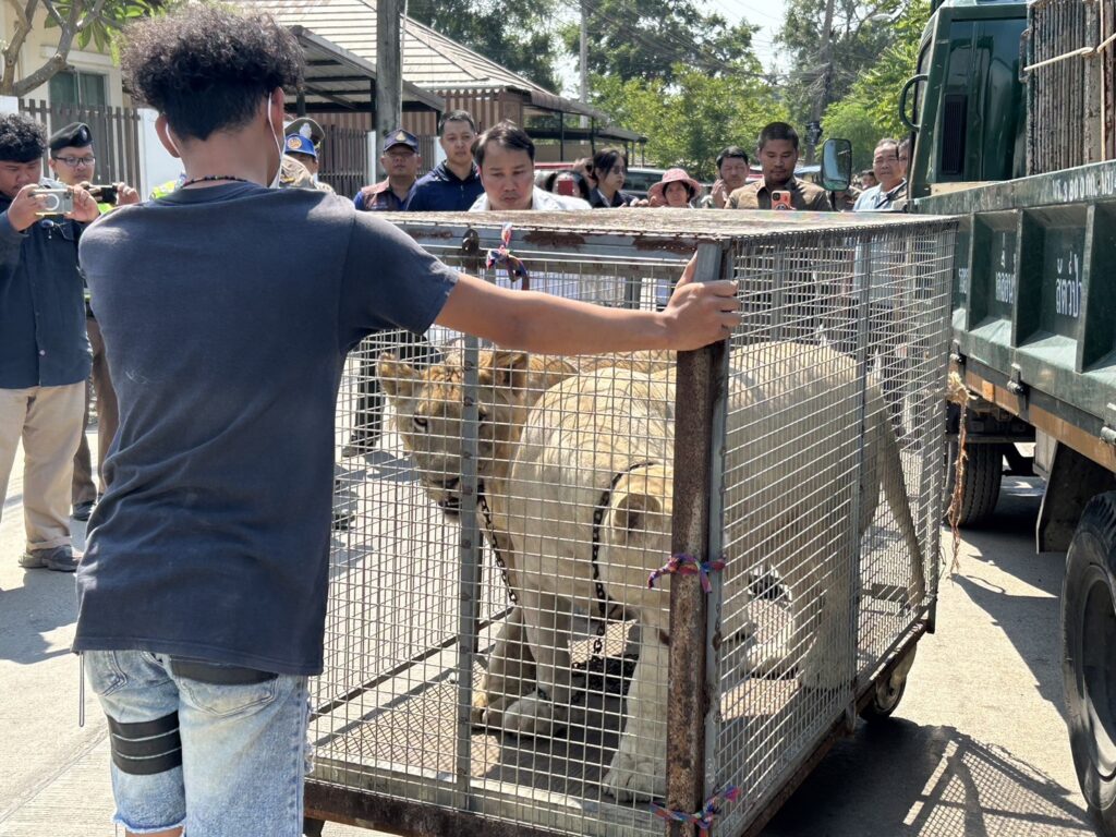 นายอรรถพล เจริญชันษา อธิบดีกรมอุทยานแห่งชาติ สัตว์ป่า และพันธุ์พืชกล่าวว่า ได้รับรายงานจากนายก้องเกียรติ เต็มตำนาน ผู้อำนวยการสำนักบริหารพื้นที่อนุรักษ์ที่ 2 (ศรีราชา) (สบอ. 2) กล่าวว่า ได้เข้าตรวจสอบบ้านบ้านเลขที่ 17/19 หมู่ที่ 4 ตำบลห้วยใหญ่ อำเภอบางละมุง จังหวัดชลบุรีซึ่งเลี้ยงสิงโต 2 ตัวไว้ในบ้านอีกครั้ง เจ้าหน้าที่สบอ. 2 เข้าตรวจสอบร่วมกับเจ้าหน้าที่ด่านตรวจสัตว์ป่าแหลมฉบัง เจ้าหน้าที่สถานีเพาะเลี้ยงสัตว์ป่าบางละมุง เจ้าหน้าที่เขตห้ามล่าสัตว์ป่าเขาชีโอน เจ้าหน้าที่สำนักงานทรัพยากรธรรมชาติและสิ่งแวดล้อมจังหวัดชลบุรี ร่วมกับสถานีตำรวจภูธรห้วยใหญ่ ตำรวจกองบังคับการปราบปรามการกระทำความผิดเกี่ยวกับทรัพยากรธรรมชาติและสิ่งแวดล้อม (บก.ปทส.) และฝ่ายปกครองอำเภอบางละมุง หลังจากที่ได้รับหมายค้นจากศาลแล้ว