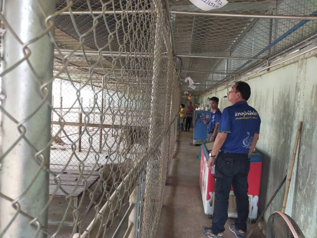 2. นายสักรินทร์ เสรีย์พาณิชย์การ ครอบครอง ณ บ้านเลขที่ 174/1 ม.12 ต. หนองยาว อ. พนมสารคาม จ. ฉะเชิงเทรา พบสิงโต 9 ตัว โดยให้จัดทำประตูก่อนเข้ากรงคอก 1 ชั้นก่อนจะถึงบริเวณกรงคอก บริเวณกรงคอกให้เสริมเหล็กโครง เพื่อความแข็งแรง และเสริมลวดตาข่ายประตูกรงคอกไม่ให้สิงโตยื่นขาออกมาได้ เพื่อความปลอดภัยของผู้เลี้ยง ให้จัดทำป้ายชื่อ เพศ และรหัสไมโครชิปติดไว้หน้ากรงคอกทุกกรง บริเวณกรงพักของสิงโตให้จัดทำคอกพักกึ่งธรรมชาติเพื่อให้สัตว์ผ่อนคลาย (Yard) พร้อมให้เพิ่มแคร่นอน 9 ตัวซึ่งกำชับให้ดำเนินการให้แล้วเสร็จภายใน 60 วัน