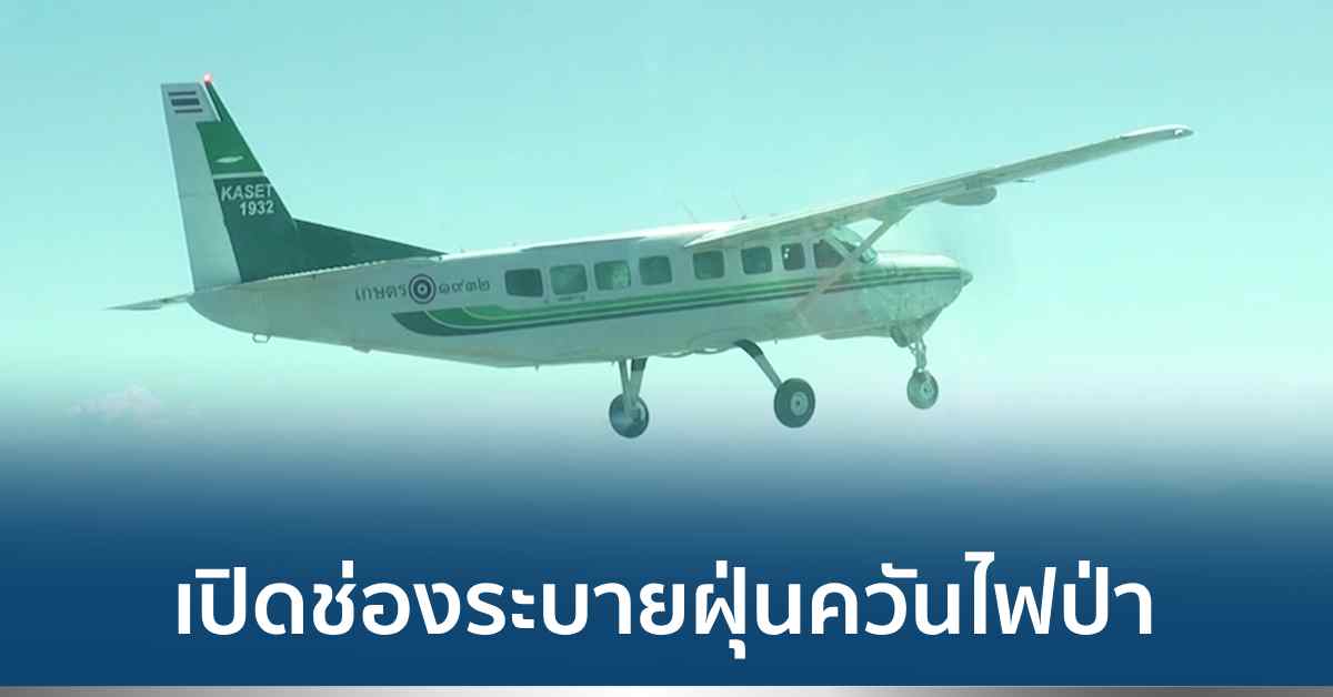 ขณะที่เครื่องบินฝนหลวงขึ้นบินสร้างกระแสลม เพื่อเจาะช่องระบายฝุ่นขึ้นชั้นบรรยากาศในบริเวณที่มีค่าฝุ่นสูง ช่วยลดฝุ่นควันในเชียงใหม่ โดยตำบลหางดง อำเภอฮอด พบจุดความร้อน หรือไฟป่ามากถึง 42 จุด ค่า PM 2.5 สูง 80.4 ไมโครกรัม/ลูกบาศก์เมตร.–สำนักข่าวไทย