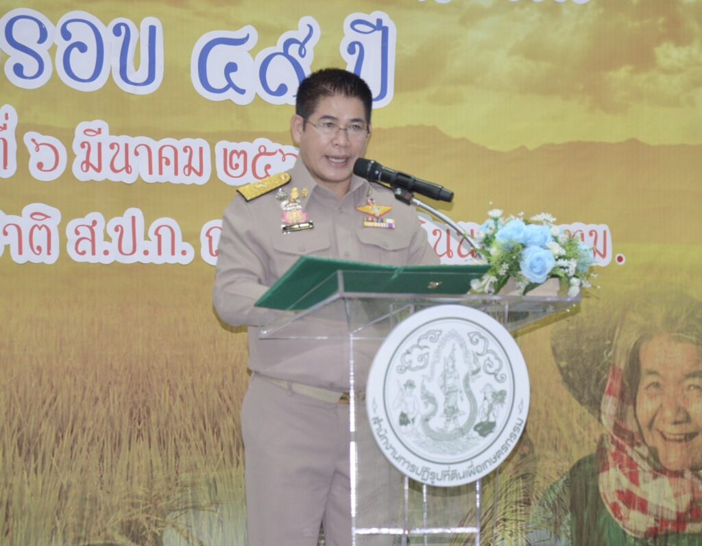 ขณะที่ เลขาธิการ ส.ป.ก. กล่าวว่า สำนักงานการปฏิรูปที่ดินเพื่อเกษตรกรรม (ส.ป.ก.) มีส่วนช่วยสนับสนุนการแก้ไขปัญหาการถือครองที่ดินทำกินให้แก่กษตรกรและผู้ยากไร้ เพื่อประกอบอาชีพเกษตรกรรม เนื่องในโอกาสวันคล้ายวันสถาปนา ส.ป.ก.ครบรอบ 49 ปี มีแนวทางการทำงาน “Fast Forward to the Future 49 ปี ส.ป.ก. พลิกโฉม เพิ่มมูลค่า มุ่งสู่อนาคตที่ยั่งยืน”