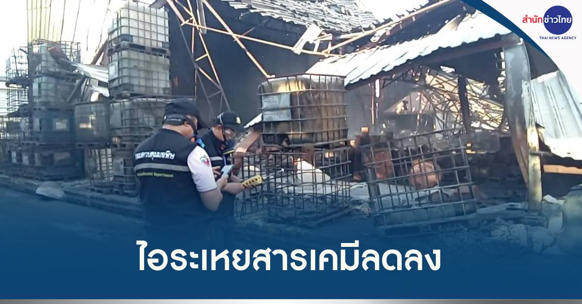 ทั้งนี้กรมควบคุมมลพิษประเมินผลการตรวจวัดคุณภาพอากาศตั้งแต่วันที่ 22 เมษายน – 28 เมษายน 2567 พบว่า ชนิดและปริมาณความเข้มข้นของไอระเหยสารเคมีที่ตรวจพบมีแนวโน้มลดลงอย่างต่อเนื่อง ตามสถานการณ์ที่สามารถควบคุมเพลิงได้แล้ว แต่ยังคงพบไอระเหยสารเคมีบางชนิดที่ส่งผลกระทบต่อระบบทางเดินหายใจ ระคายเคืองตาและผิวหนัง หากเกิดอาการผิดปกติควรรีบไปพบแพทย์ทันที ซึ่งกรมควบคุมมลพิษและกรมโรงงานอุตสาหกรรมจะยังคงเฝ้าระวังสถานการณ์อย่างต่อเนื่อง. 512 – สำนักข่าวไทย