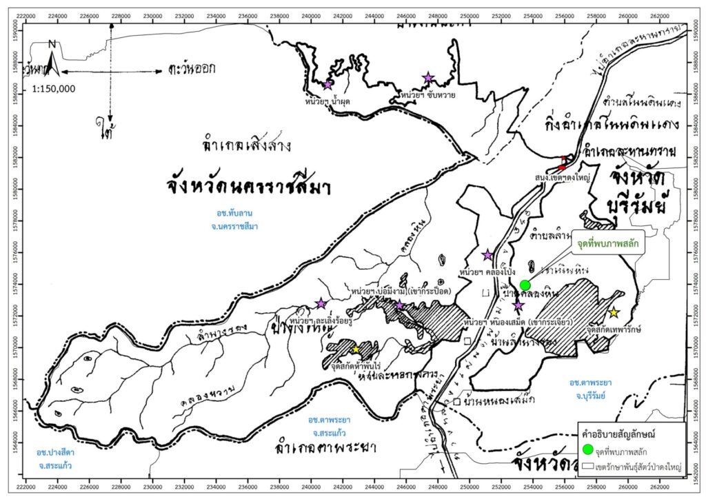 นายอรรถพล เจริญชันษา อธิบดีกรมอุทยานแห่งชาติ สัตว์ป่า และพันธุ์พืชเปิดเผยว่าได้รับรายงานจากนายสมส่วน รักสัตย์ หัวหน้าเขตรักษาพันธุ์สัตว์ป่าดงใหญ่ว่า สั่งการให้เจ้าหน้าที่ของเขตรักษาพันธุ์สัตว์ป่าดงใหญ่เข้าไปสำรวจจุดที่พบรูปแกะสลักหินโบราณซึ่งชาวบ้านในพื้นที่.ต. ลำนางรอง อ. โนนดินแดง จ. บุรีรัมย์ เข้าไปเก็บเห็ดในพื้นที่เขตรักษาพันธุ์สัตว์ป่าดงใหญ่ แล้วพบศิลาแกะสลักโบราณ บริเวณเขากระเจียว