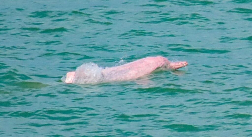 สำหรับสีชมพูของโลมานั้นมาจากเมื่อโลมามีอายุมากจะมีสีสว่างขึ้นจนถึงเป็นสีชมพู สีชมพูนี้ไม่ได้มาจากเซลล์เม็ดสี แต่มาจากสีของหลอดเลือดที่ทำหน้าที่ป้องกันไม่ให้เกิดภาวะที่อุณหภูมิของร่างกายสูงเกินไป การพบเห็นโลมาสีชมพูบ่งบอกถึงความอุดมสมบูรณ์ของท้องทะเลไทย