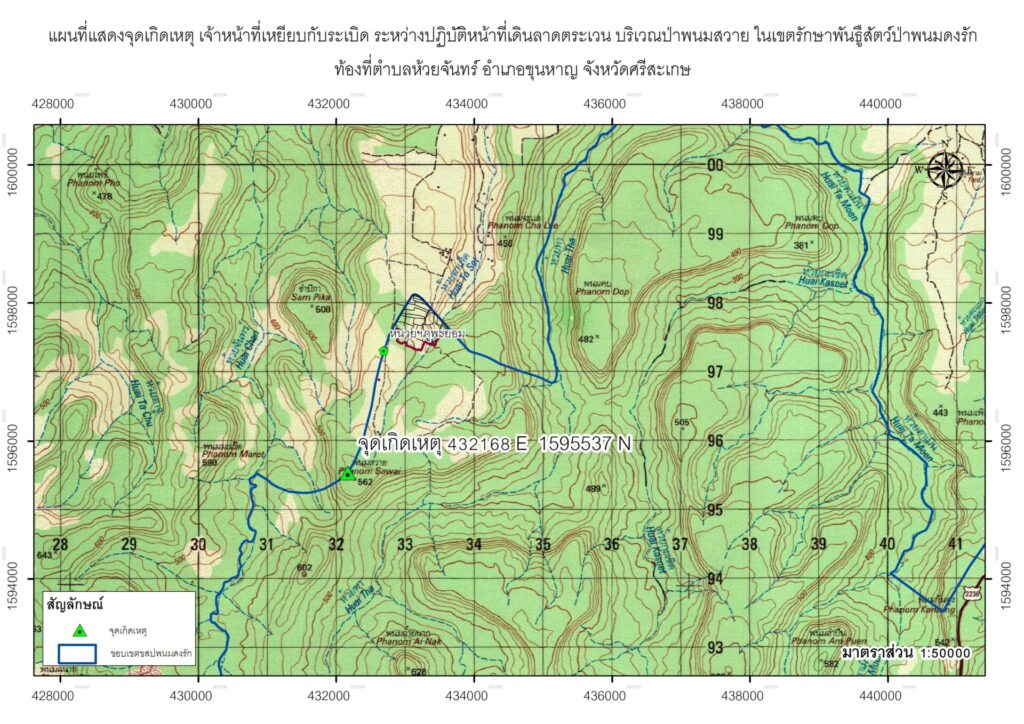 เจ้าหน้าที่ผู้ได้รับบาดเจ็บคือนายปรีชา ใสกระจ่าง อายุ 51 ปี พนักงานราชการ เป็นเจ้าหน้าที่ประจำหน่วยพิทักษ์ภูพะยอม โดยในเวลาประมาณ 13.30 น. ขณะออกลาดตระเวนเชิงคุณภาพ บริเวณจุดพิกัด 432168E 1595537N ในพื้นที่ป่าพนมสวาย ท้องที่ต. ห้วยจันทร์ อ. ขุนหาญ จ. ศรีสะเกษ ขณะออกติดตามร่องรอยของกลุ่มบุคคลที่คาดว่า เข้ามาลักลอบตัดไม้ ในพื้นที่เขตรักษาพันธุ์สัตว์ป่าพนมดงรัก
